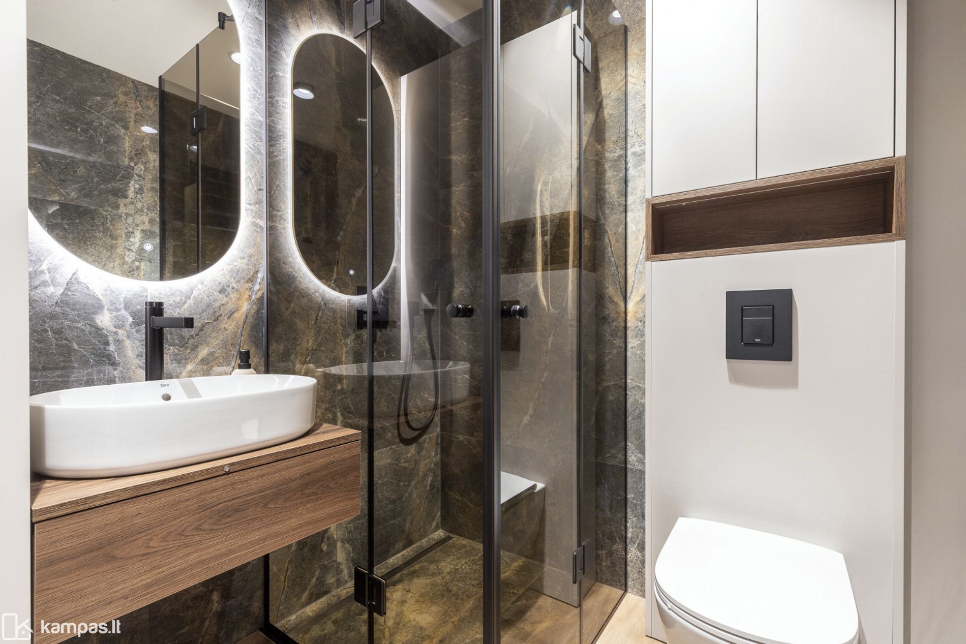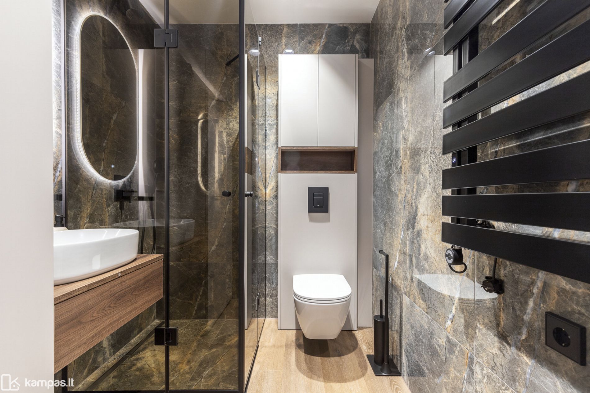 • Daug vietos daiktams susidėti - talpūs, pagal užsakymą pagaminti korpusiniai baldai – net kelios aukštos svetainės ir miegamojo spintos, vonios spinta, TV spintelė;