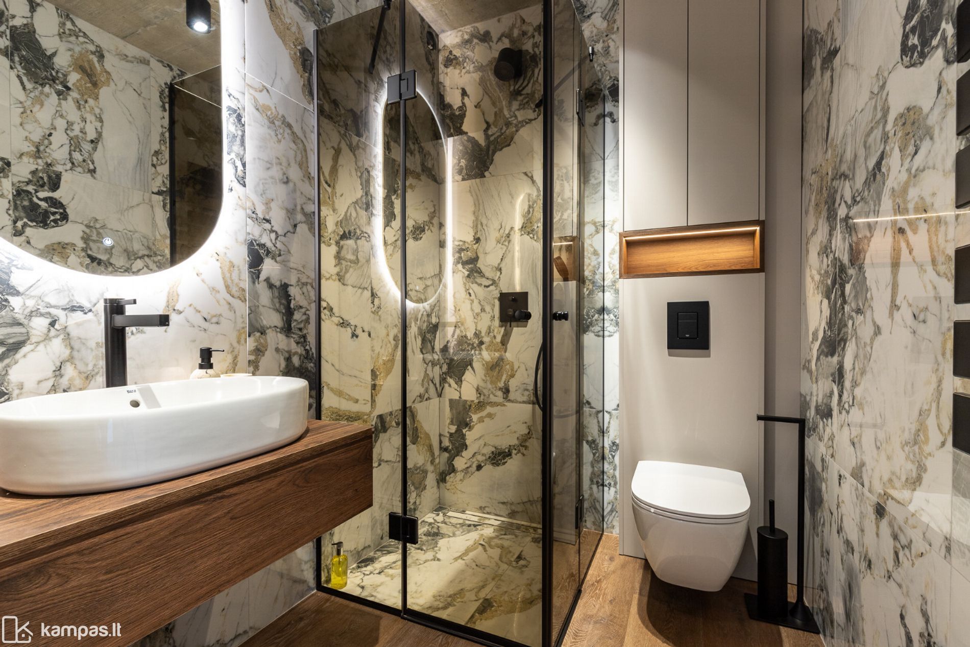 • Daug vietos daiktams susidėti - talpūs, pagal užsakymą pagaminti korpusiniai baldai – net kelios aukštos svetainės ir miegamojo spintos, vonios spinta, TV spintelė;