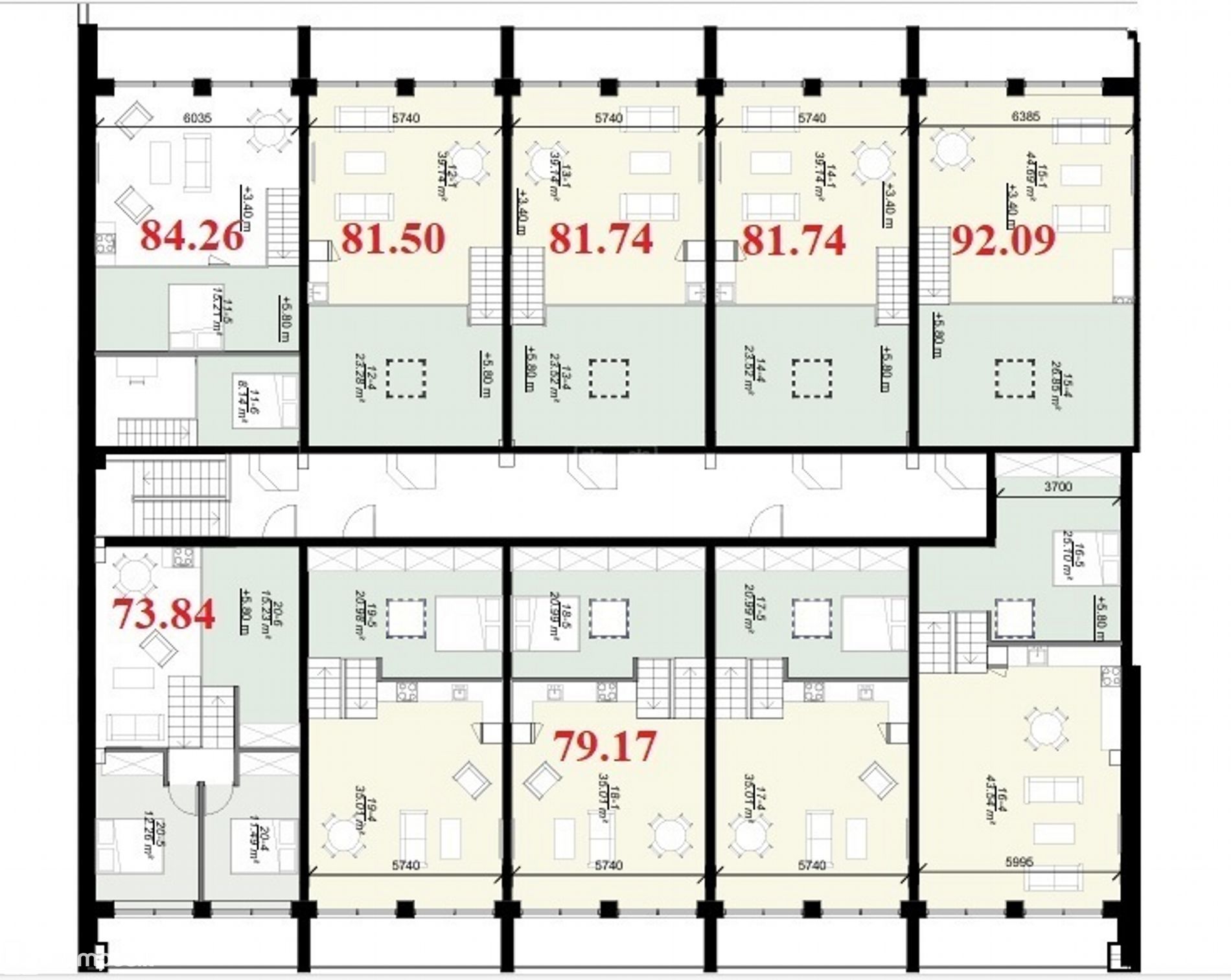 Loftų plotas nuo 74 kv. m. iki 92 kv. m.