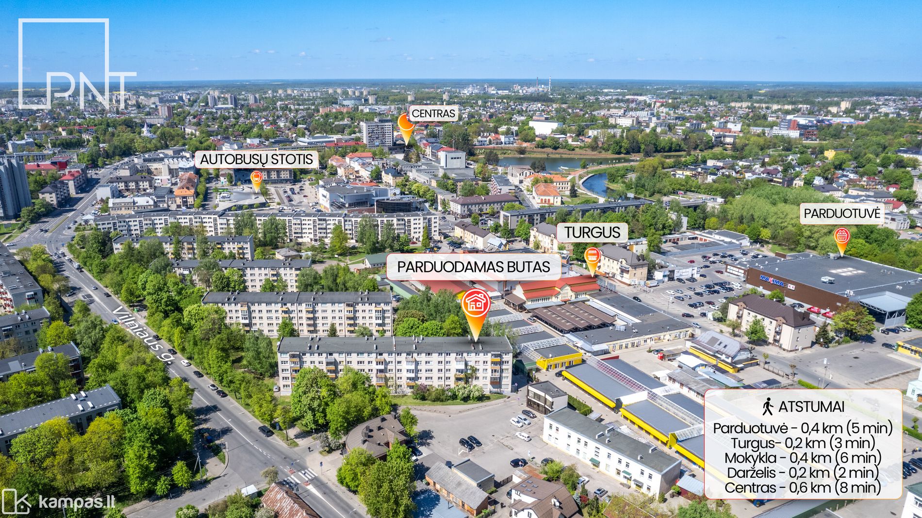 - Šalia Panevėžio turgus, parduotuvės, viešojo transporto stotelės, gydymo ir švietimo įstaigos