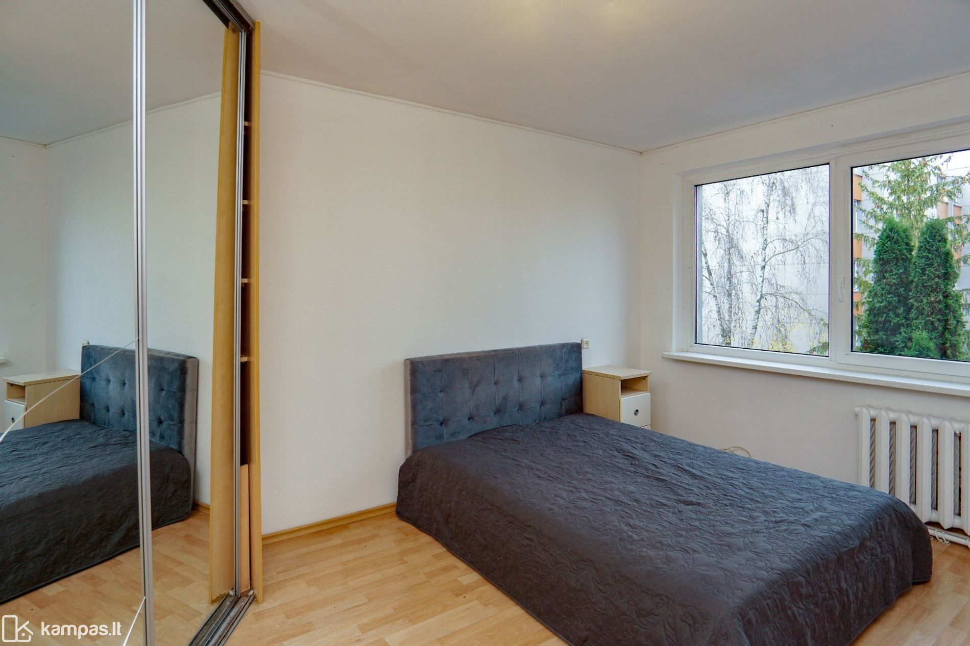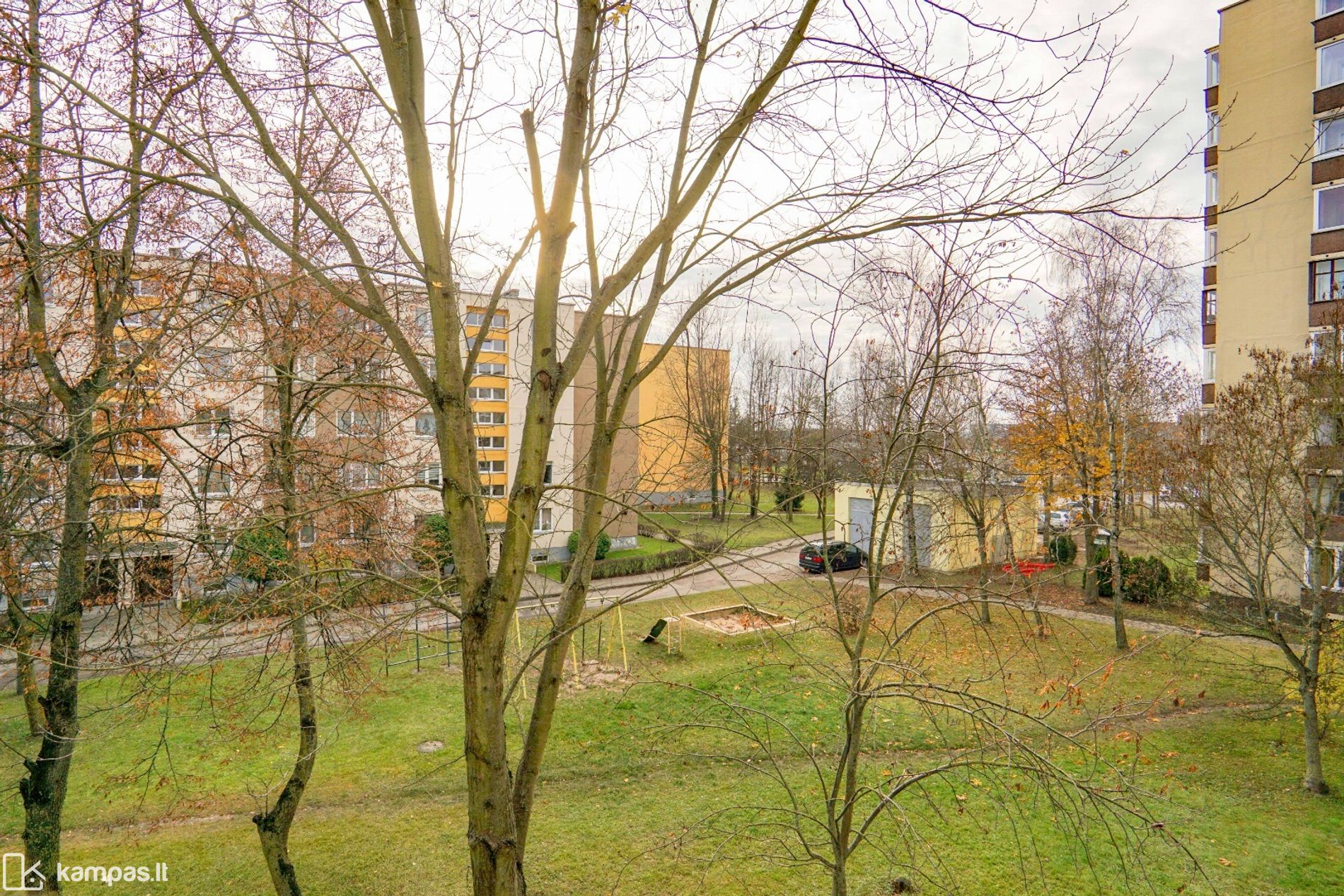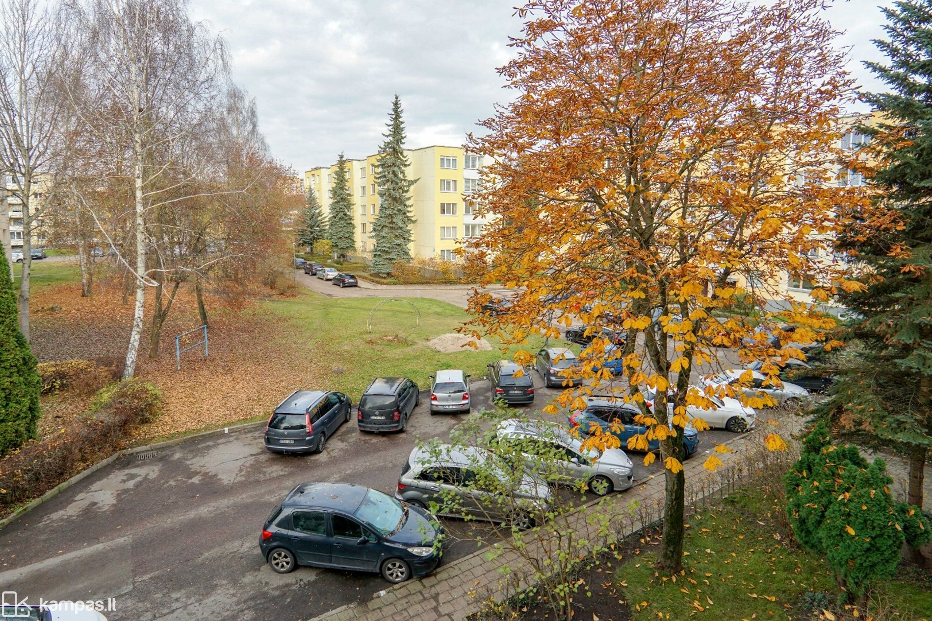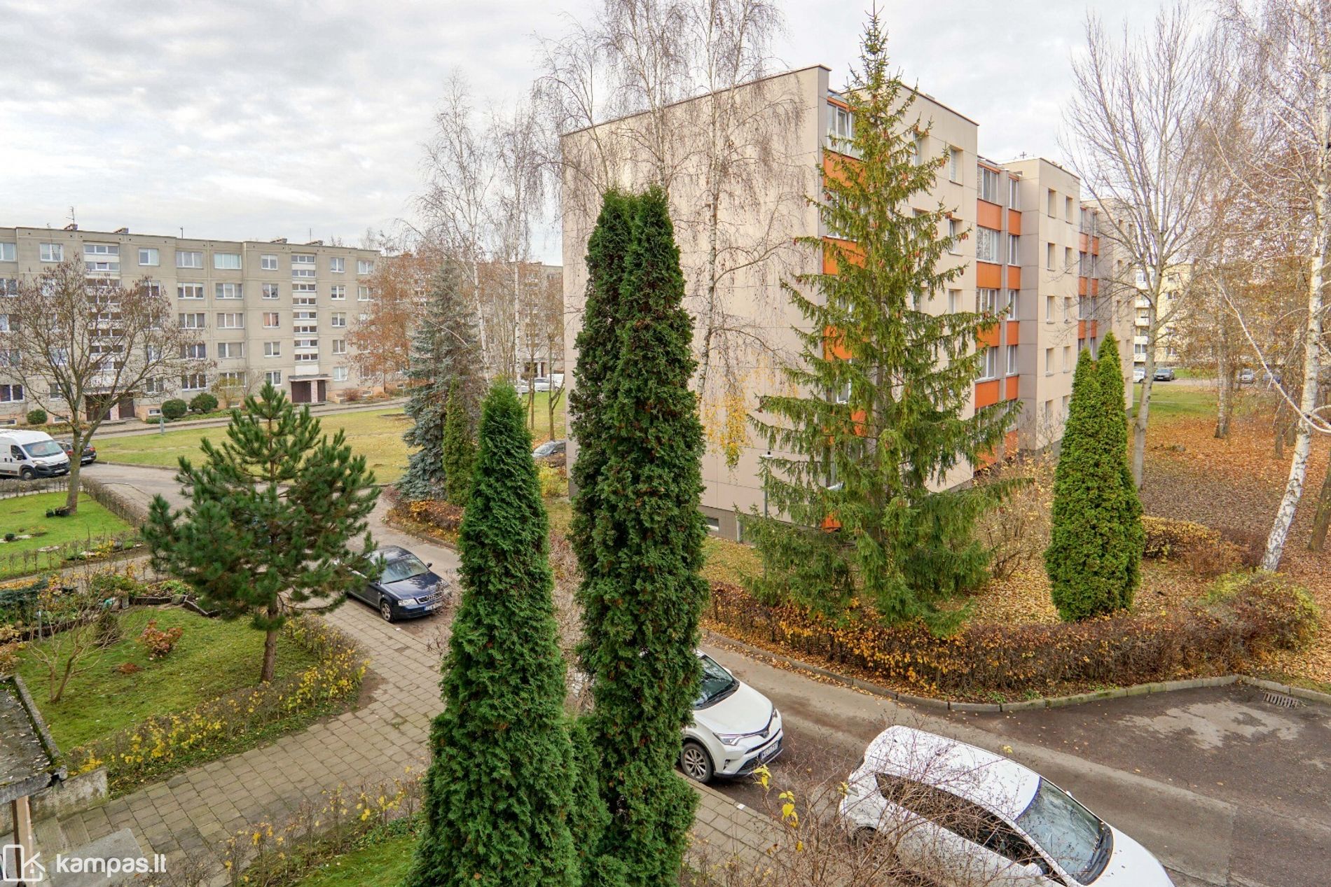 - Prižiūrima namo aplinka, prie namo automobilių parkavimo aikštelė, žalia veja ir medžiai