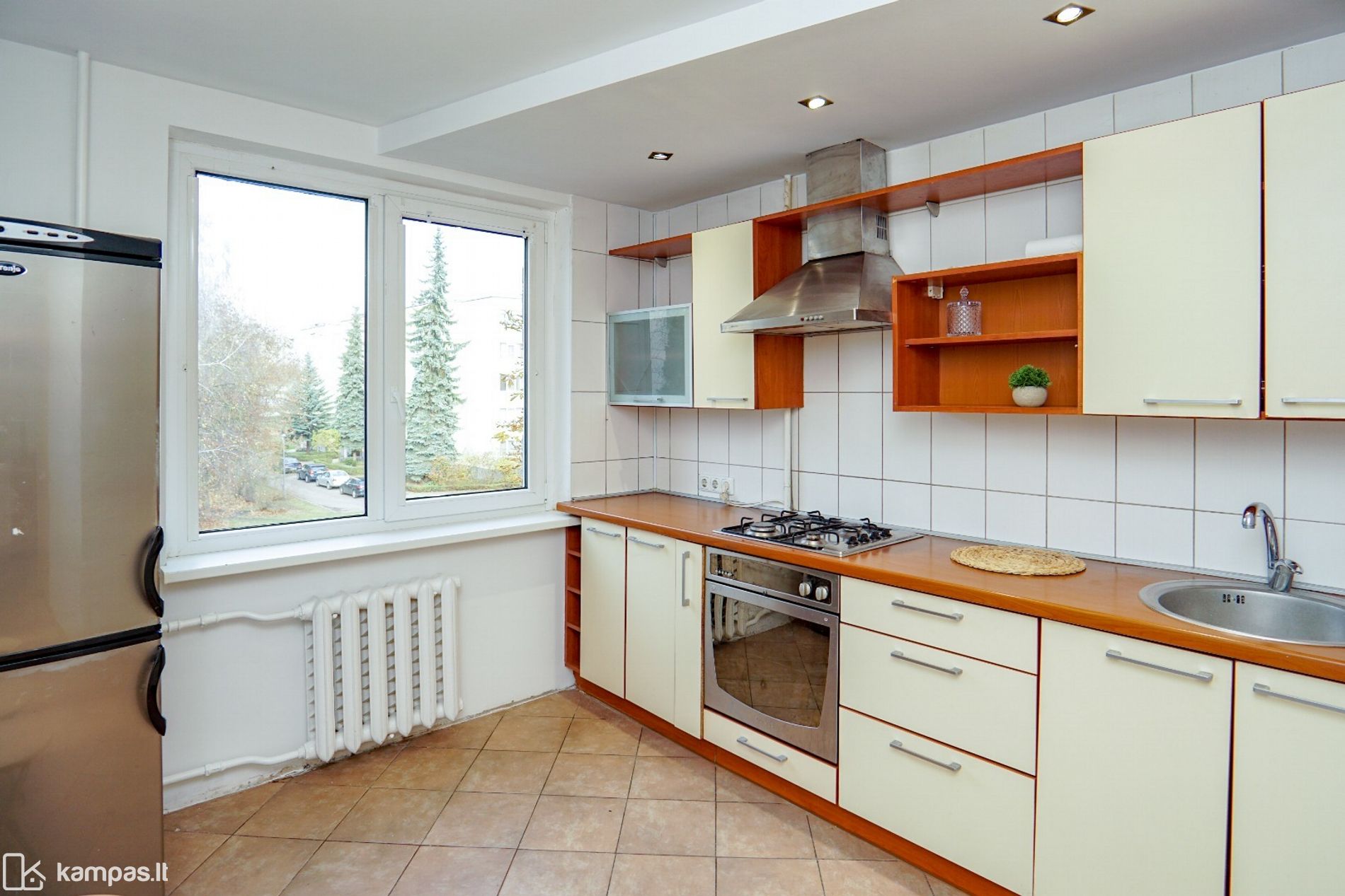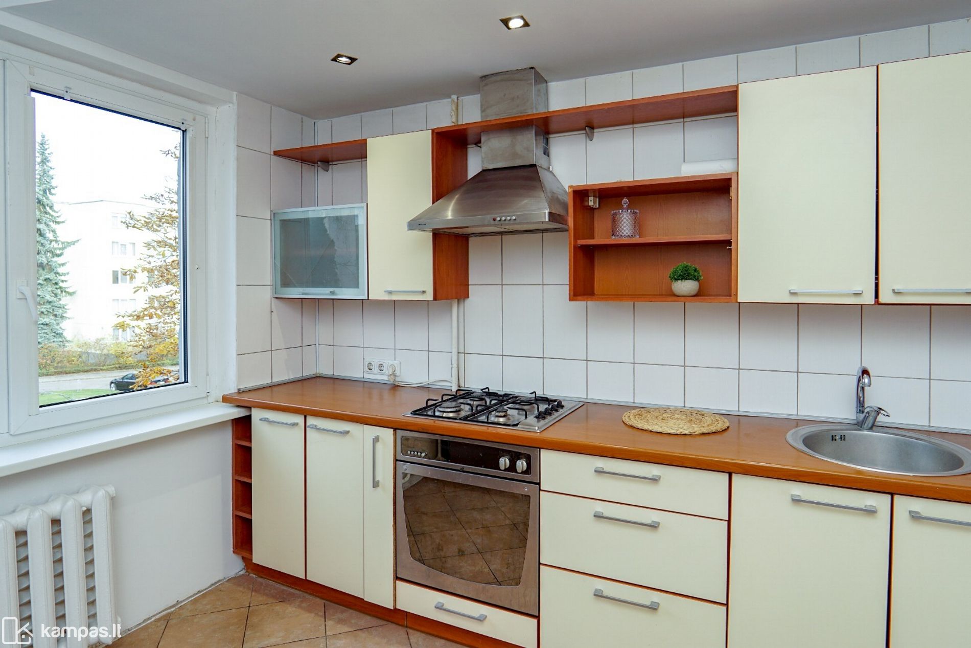 Butas trečiame aukšte, šviesus ir šiltas, jame reikalingas kosmetinis remontas. Patogus buto planavimas, nepereinami kambariai, erdvi virtuvė, butas parduodamas su jame esančiais baldais ir buitine technika; vonios kambarys ir wc bendroje patalpoje. Yra balkonas. Šarvo tipo durys. Buto langai plastikiniai su stiklo paketais, orientuoti pietų ir šiaurės kryptimis. Tvarkinga laiptinė, ramūs kaimynai. Butui priklauso sandėliukas namo rūsyje.