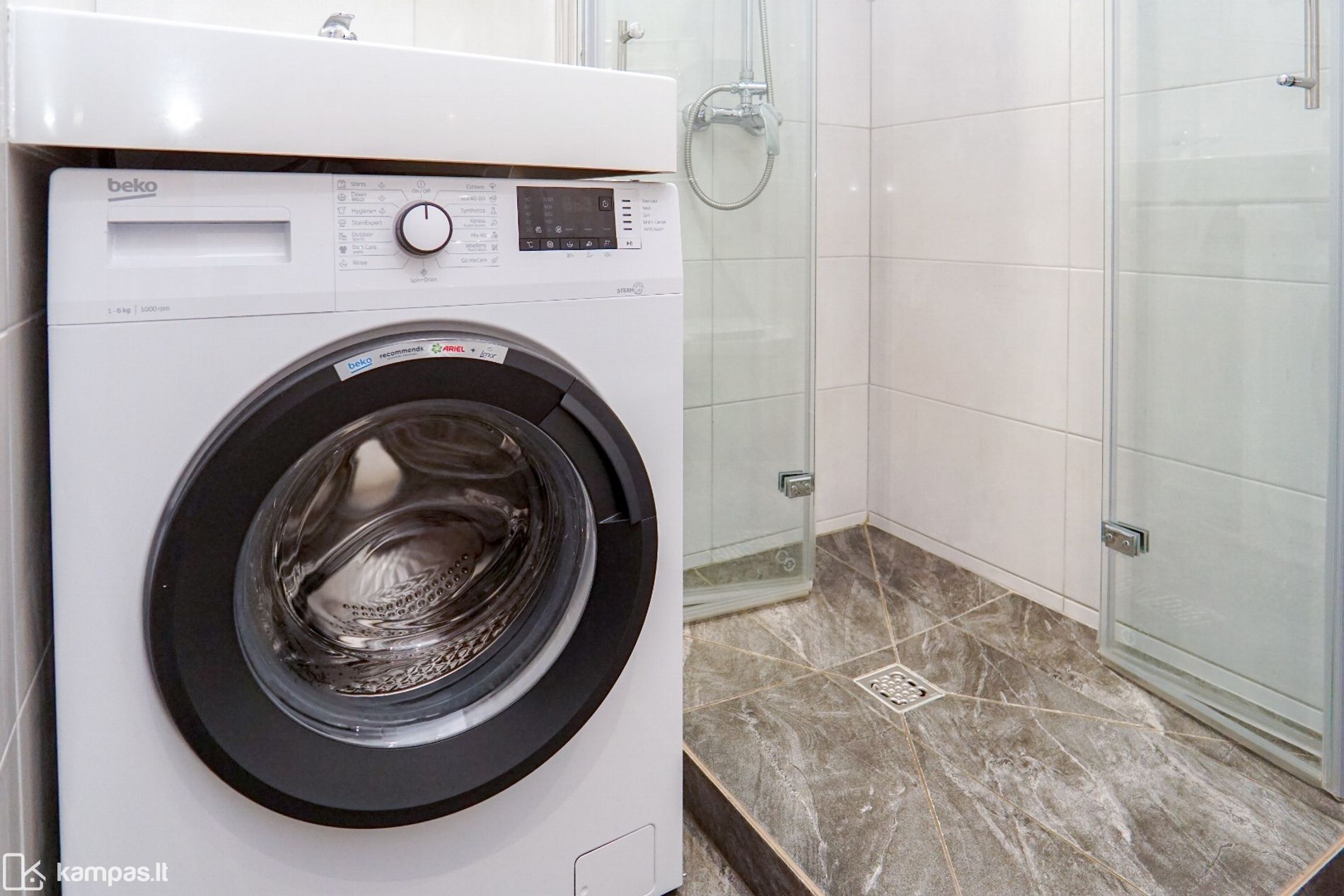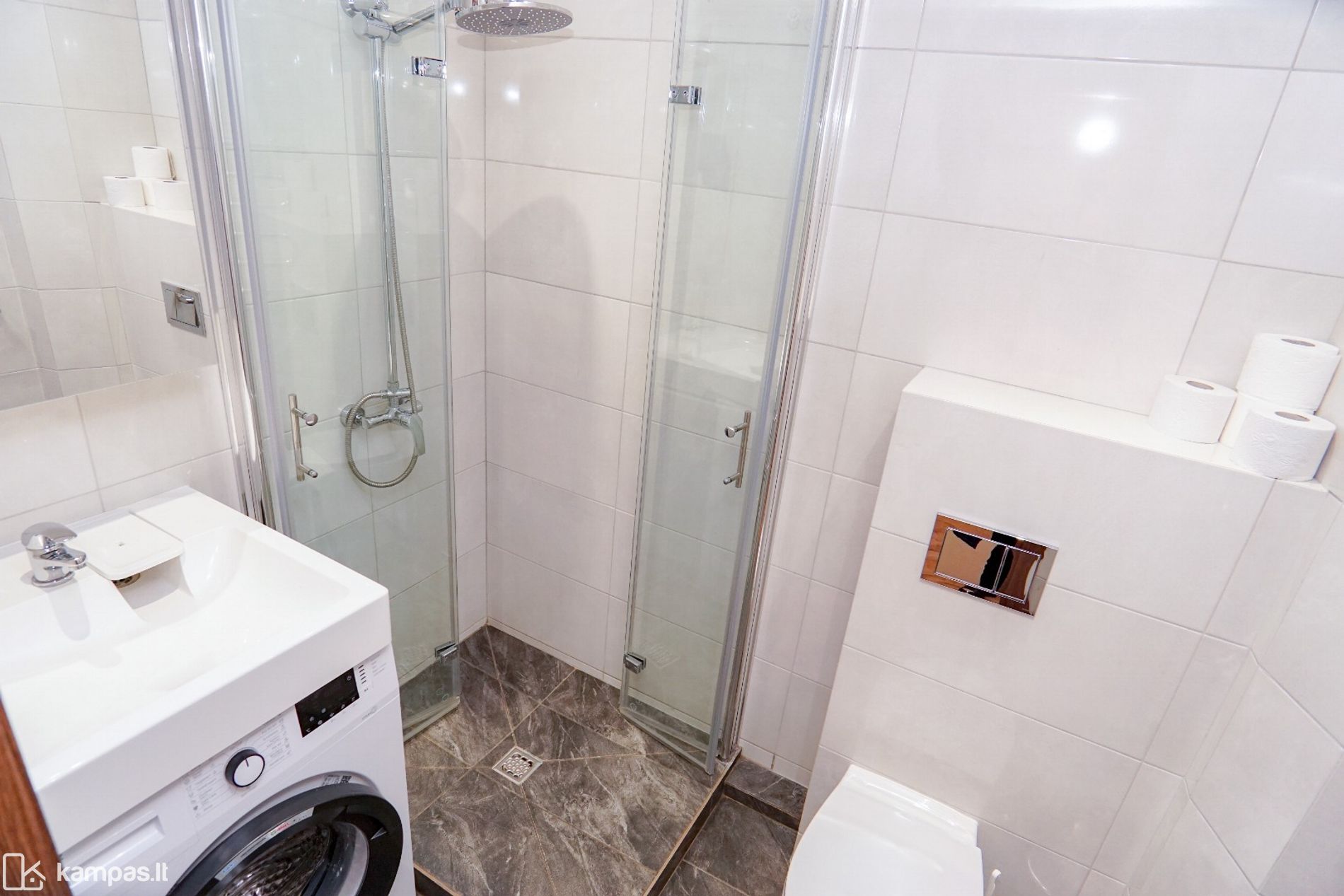 - Dušo kambarys ir wc kartu, apdaila - plytelės;
