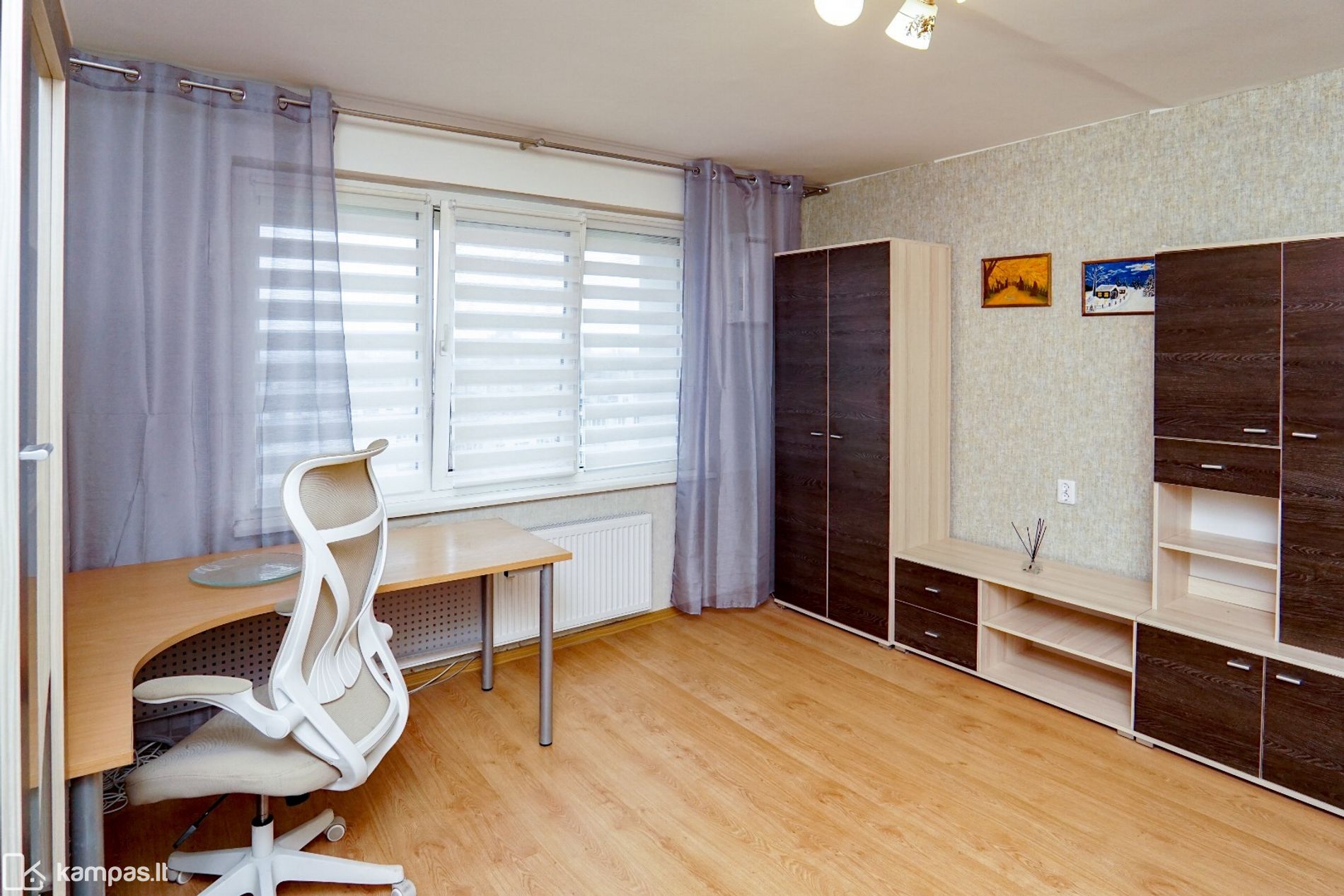 Erdvus, tvarkingas 2 kambarių butas, devintame aukšte. Namas šiuo metu moderniai renovuojamas, keičiami liftai, ant stogo turės savo saulės elektrine. Ramioje vietoje, toliau nuo pagrindinių miesto gatvių. Puiki vieta įsikurti šeimai. Netoliese Poilsio ir pramogų parkas, Kalnapilio arena, prekybos centrai, mokyklos ir vaikų darželiai. Butui priklauso sandėliukas namo rūsyje. Šį butą galima perplanuoti į trijų kambarių butą.