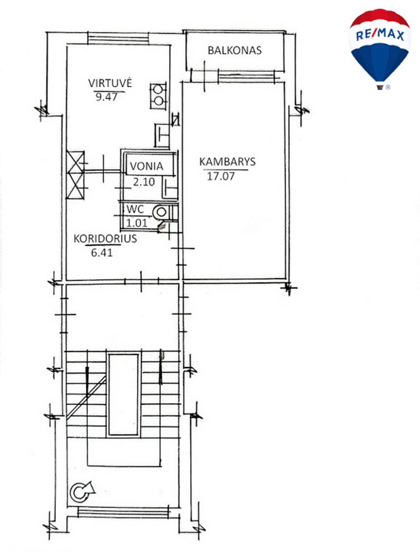 • Bute yra vienas kambarys (17,07 m2). Virtuvės plotas – 9,47 m2. Erdvus koridorius – 6,41 m2. Vonios kambarys ir wc – atskirai. Balkonas – įstiklintas. Šarvo durys.