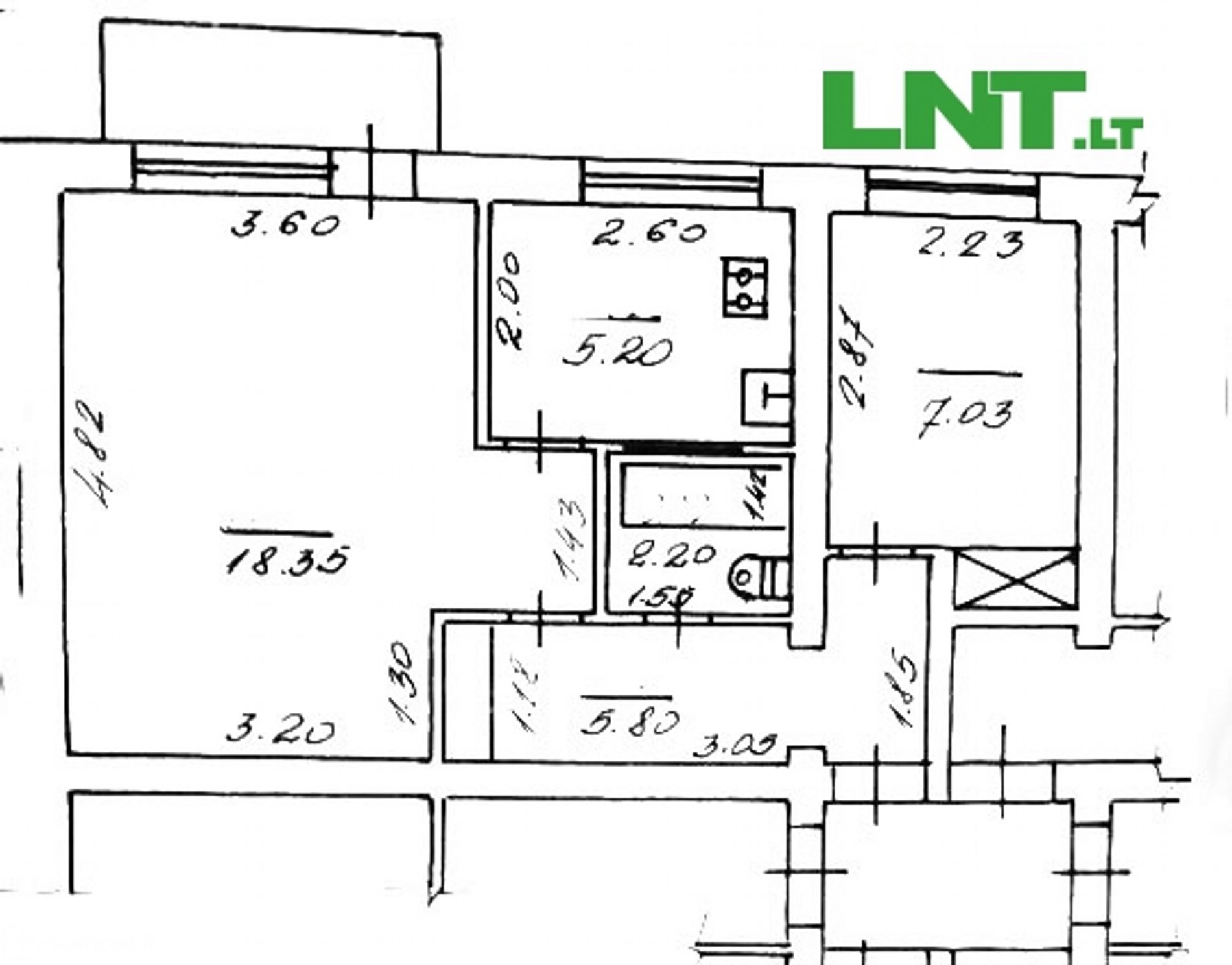 • Langai: plastikiniai (langų orientacija: į rytų puse)