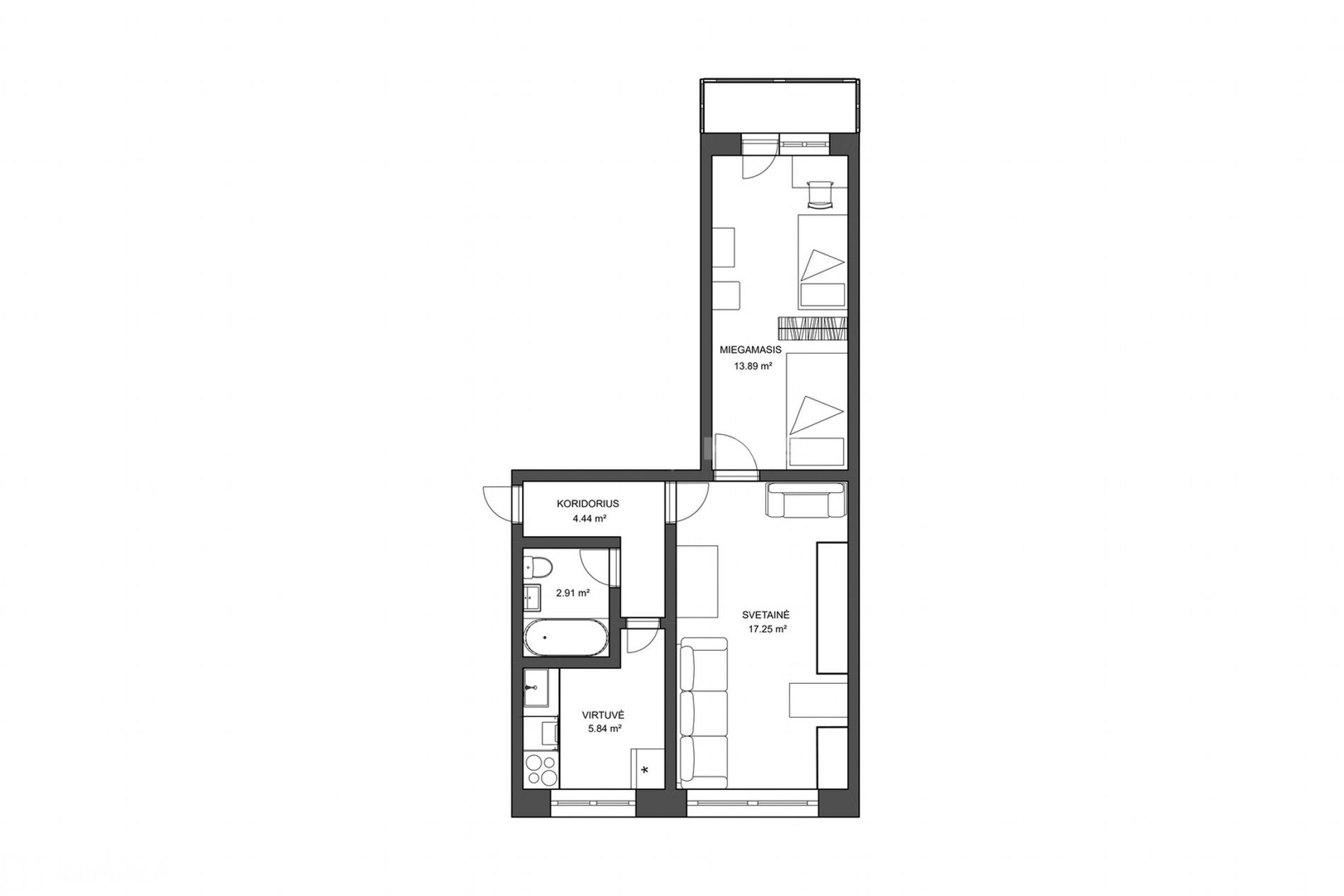 Bendras plotas – 44.33 kv.m.;