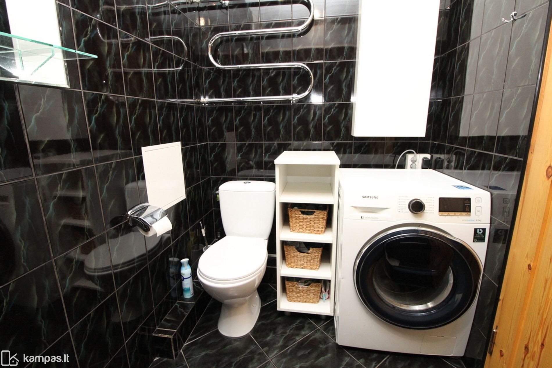 – Grindys – laminatas, vonioje – plytelės.