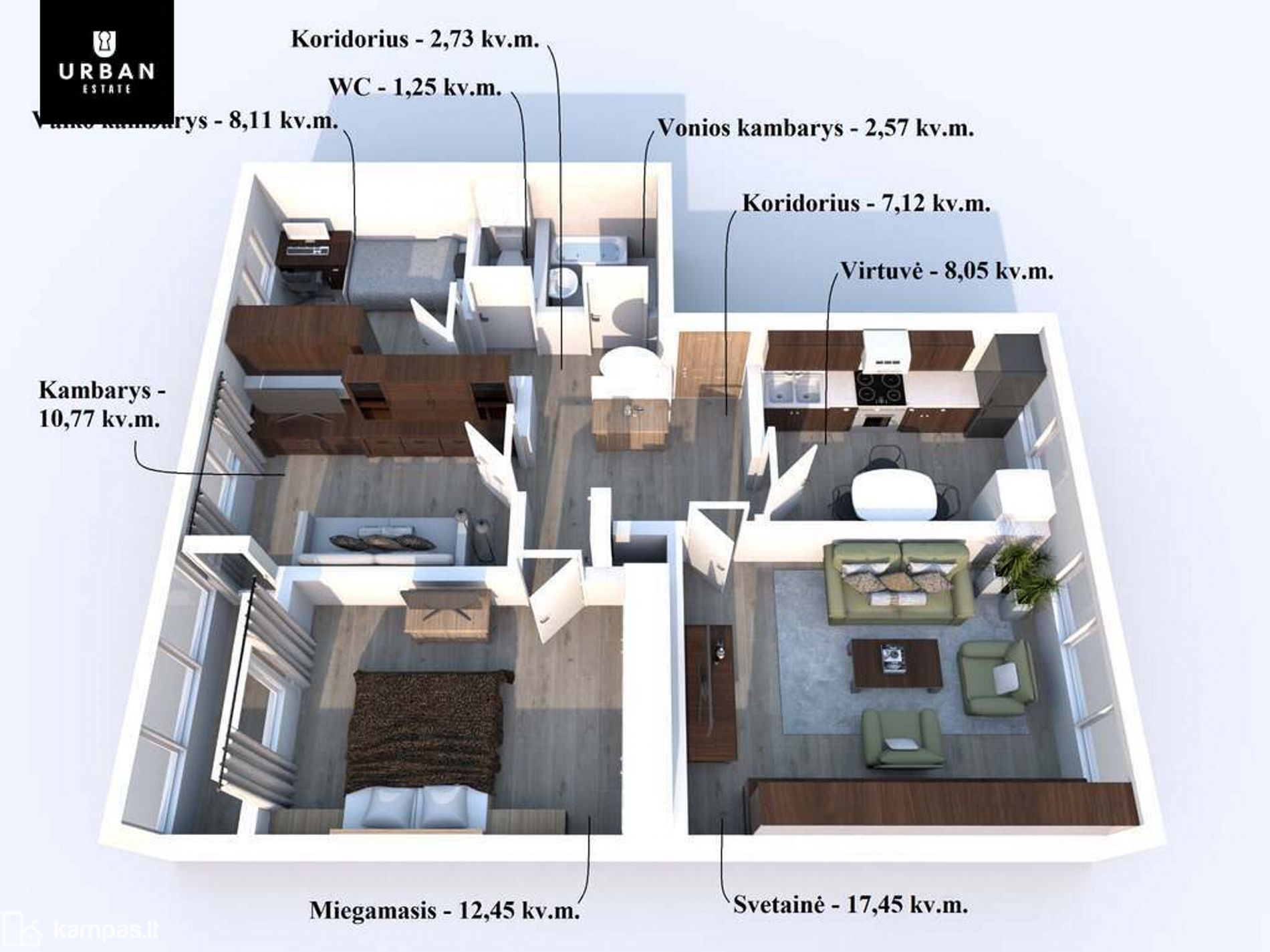- Langai į dvi namo puses, todėl bute visuomet šviesu;