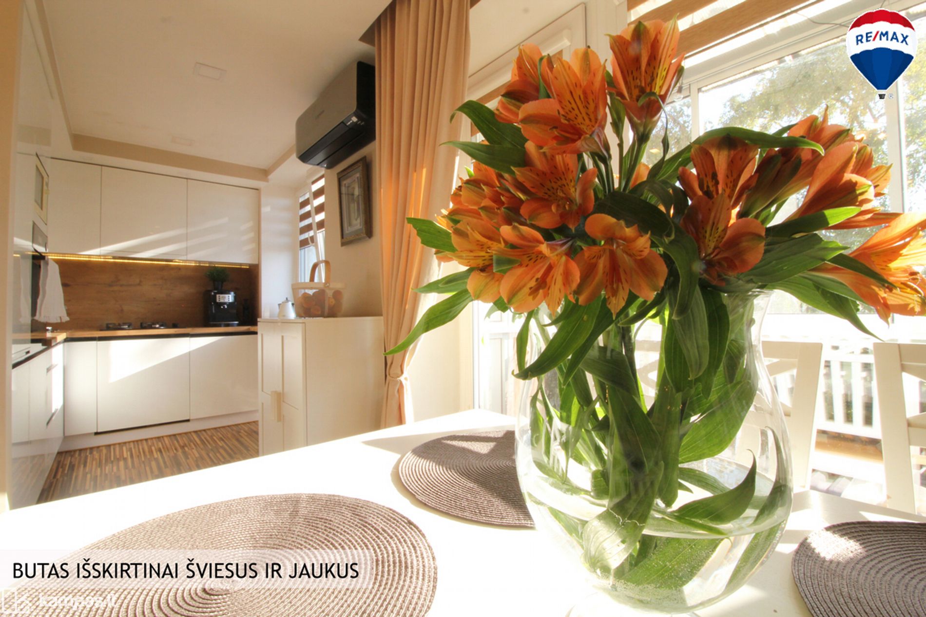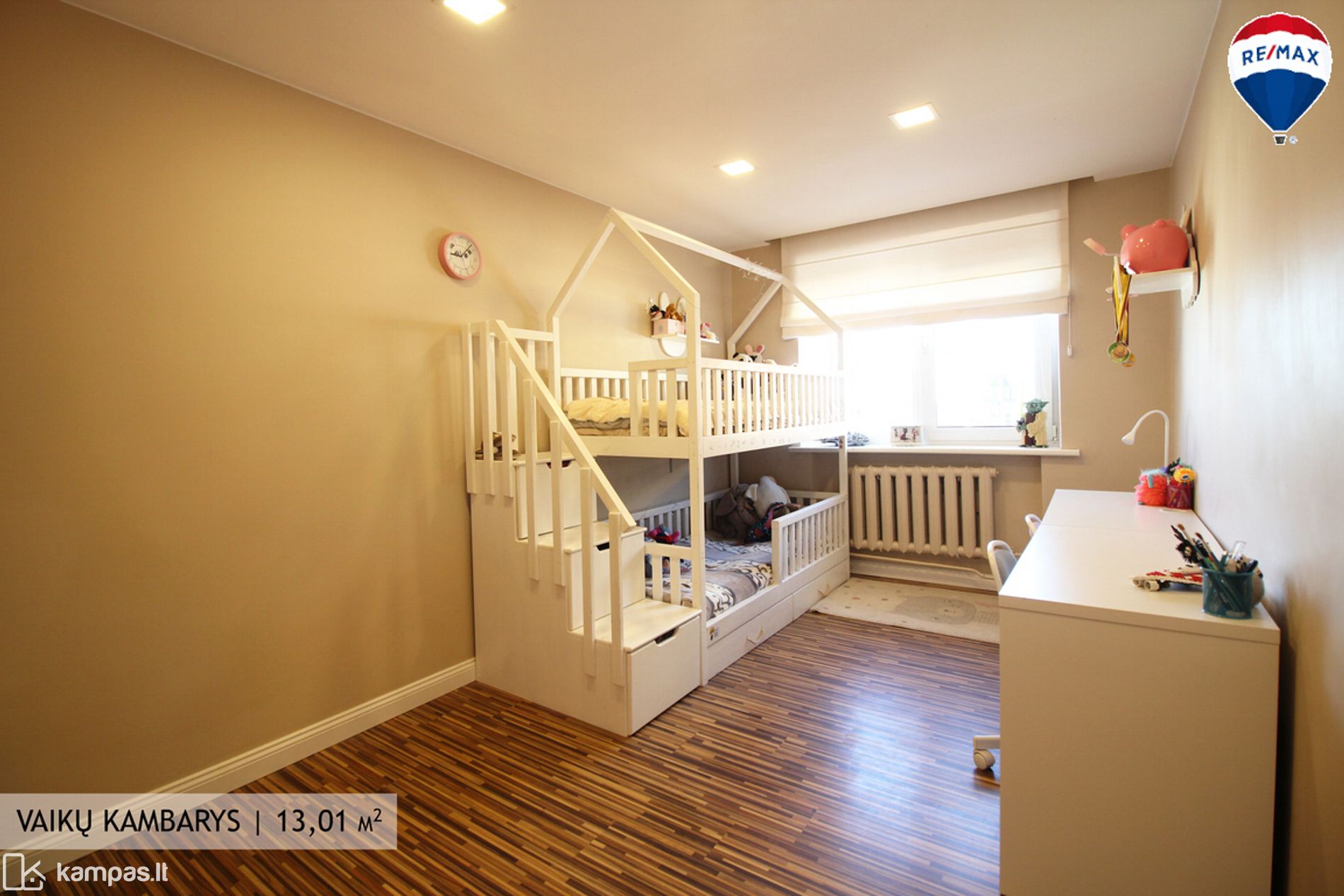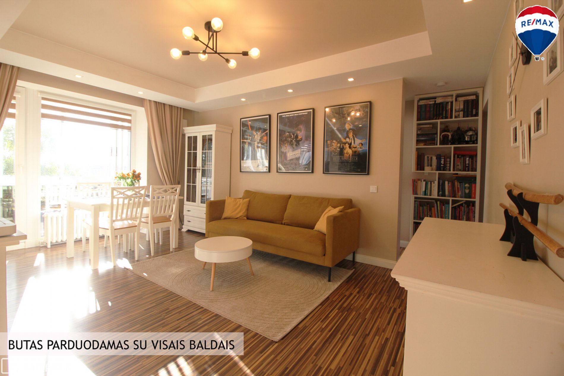 Butas ypač tinkamas šeimai: trys kambariai suteikia galimybių vaikų kambariui, miegamajam ir erdviai svetainei sujungtai su virtuve. Yra atskira talpi drabužinė, kuri palengvina daiktų laikymą ir organizavimą. Balkonas – papildoma erdvė poilsiui ar mažam darželiui vazonuose. Butas parduodamas su baldais ir pilnai įrengta virtuve, todėl įsikraustyti galima iš karto.