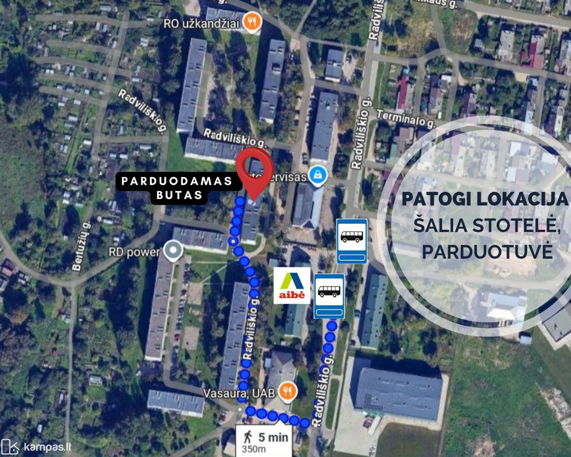 ~350 m arba 5 min pėsčiomis iki stotelės ir parduotuvės Aibė