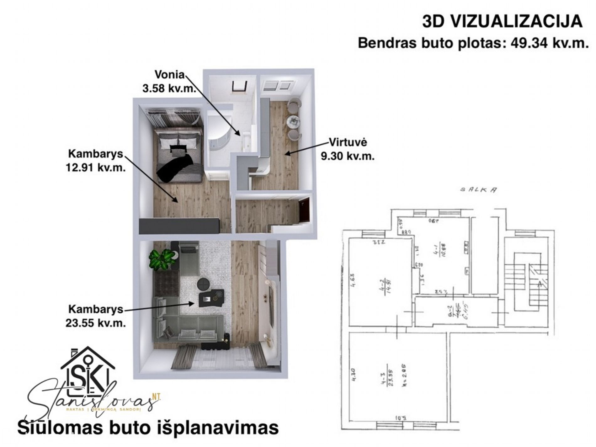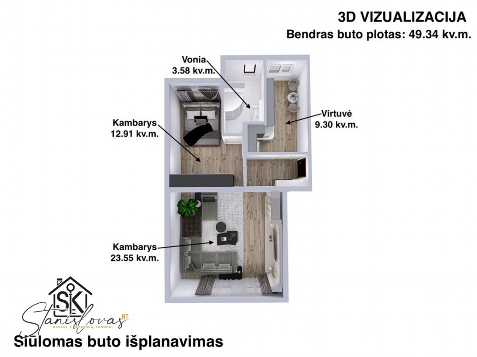 • Bendras plotas: 49.34 kv. m;