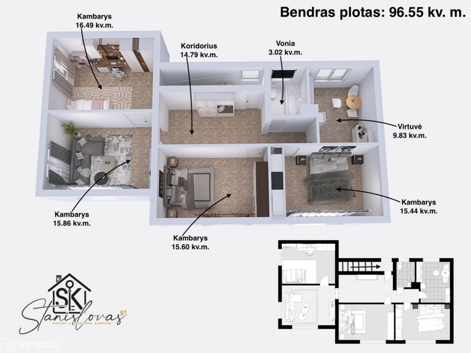 • Galimybė įsirengti pagal savo norus – puikus variantas ieškantiems erdvaus būsto;