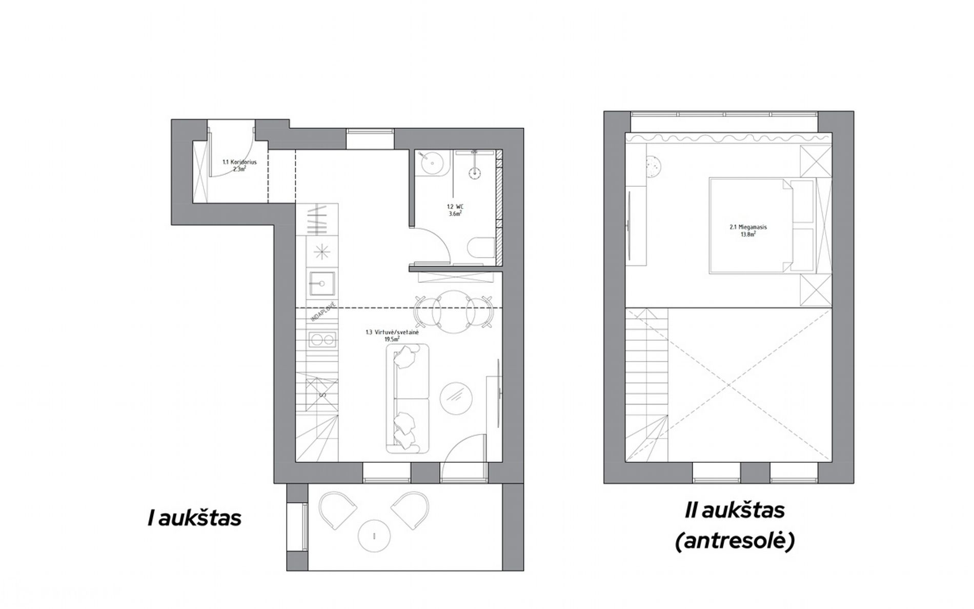 - erdvi antresolė, kurioje įsirengsite atskirą miegamąjį;