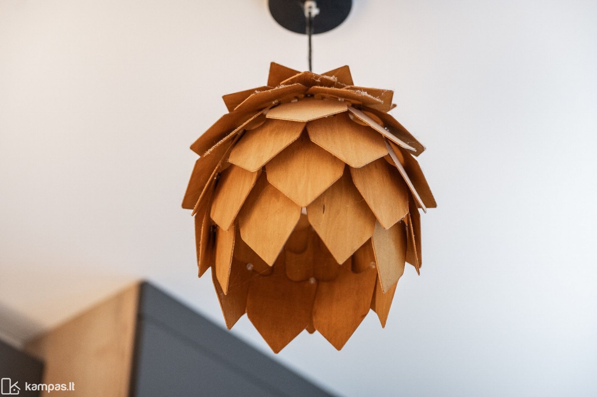 Interjeras modernus ir šiltas. Medienos akcentai dera su pastelinių spalvų potėpiais ir kuria estetišką, jaukią atmosferą.