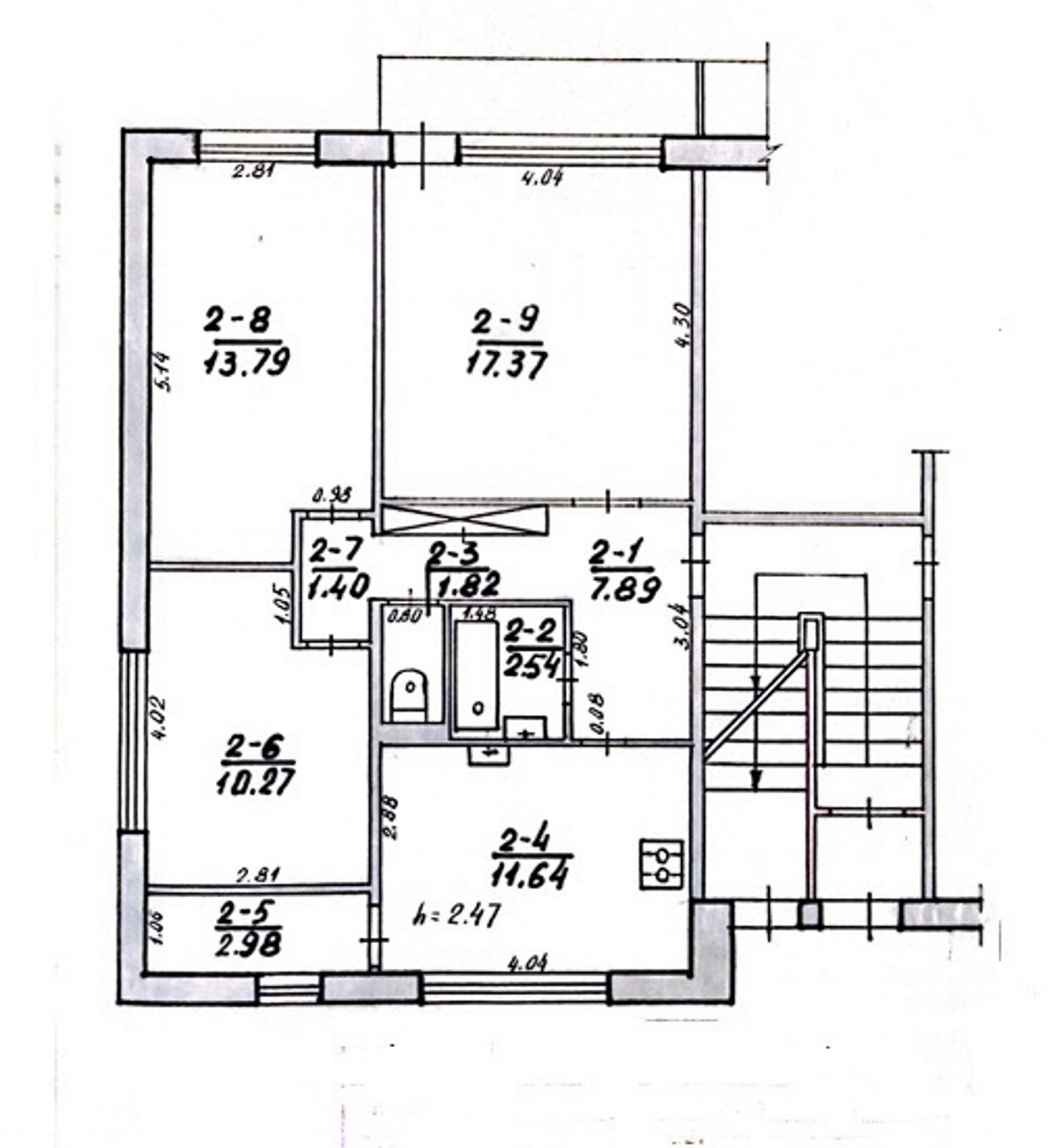 – 2 kambarys - 17,37 kv.m;