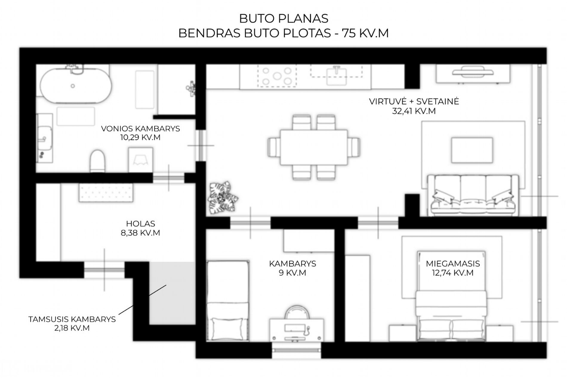 • Virtuvė su svetaine - 32,41 kv.m.;