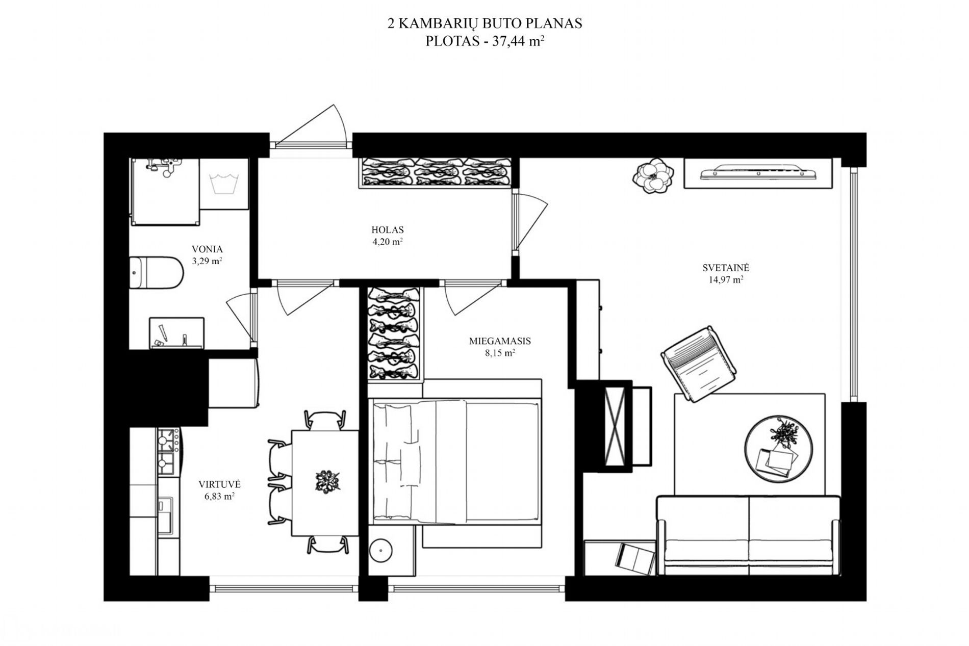 • Galima konversija į 3 kambarius, keičiant vidaus išplanavimą;