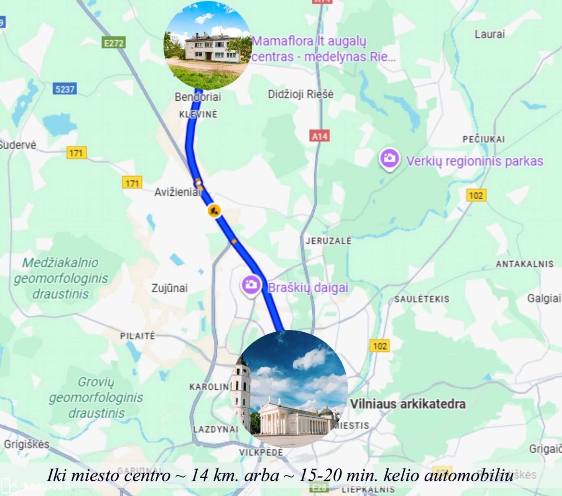 • Iki Vilniaus miesto centro ~14 km ( ~15-20 min. automobiliu);