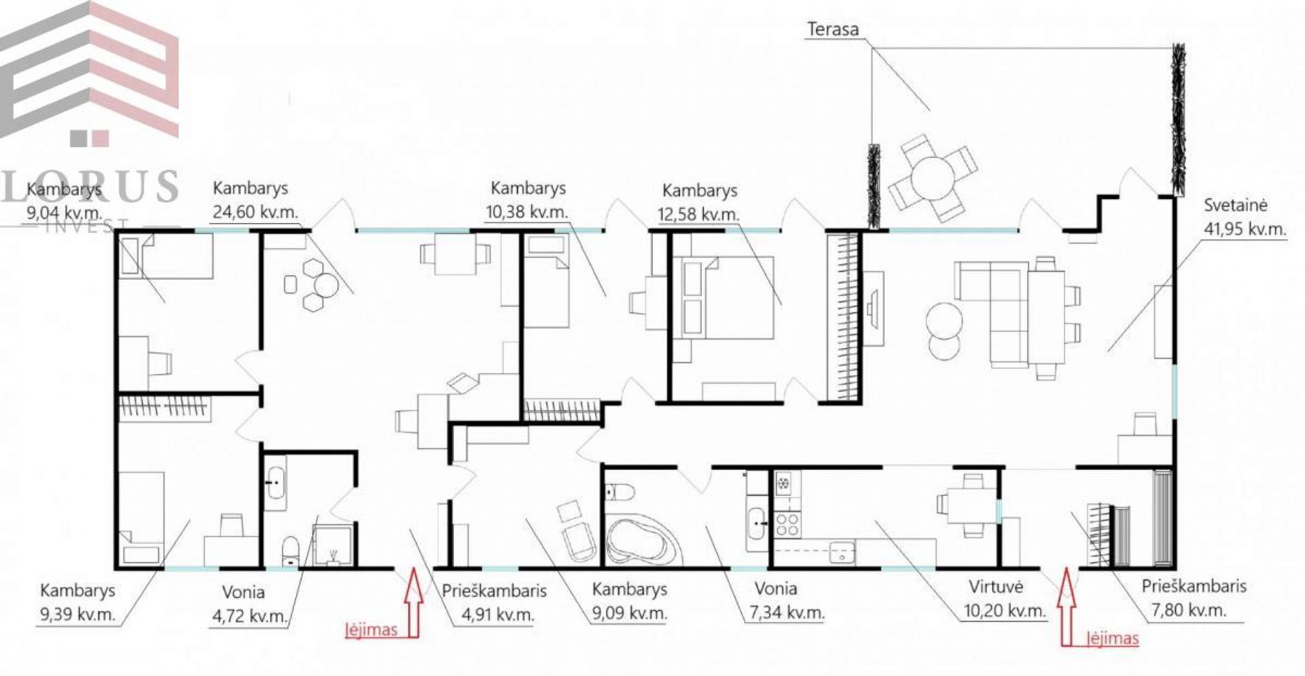 - Namas vieno aukšto – 152kv.m su ~15 arų nuosavu sklypu;