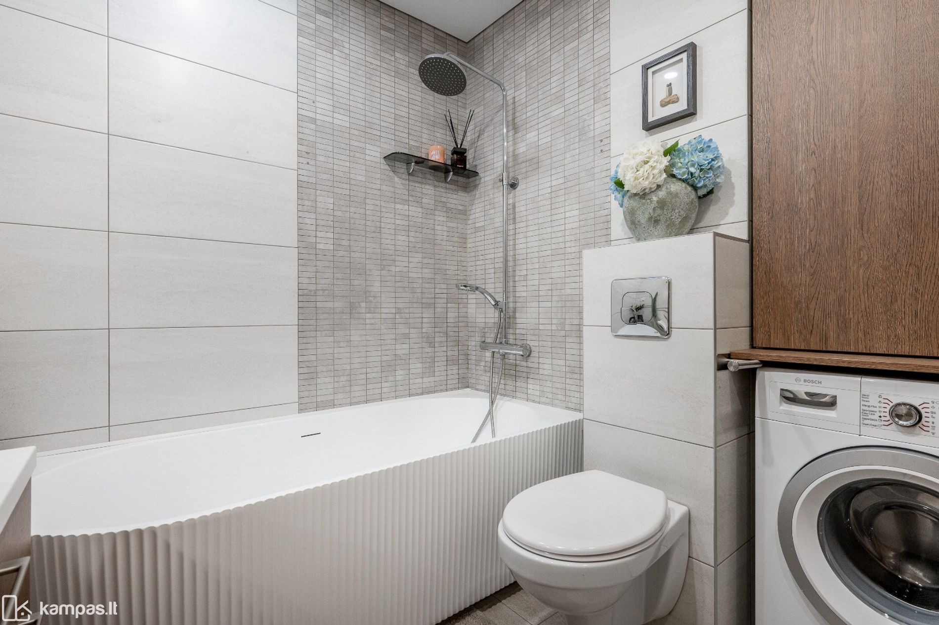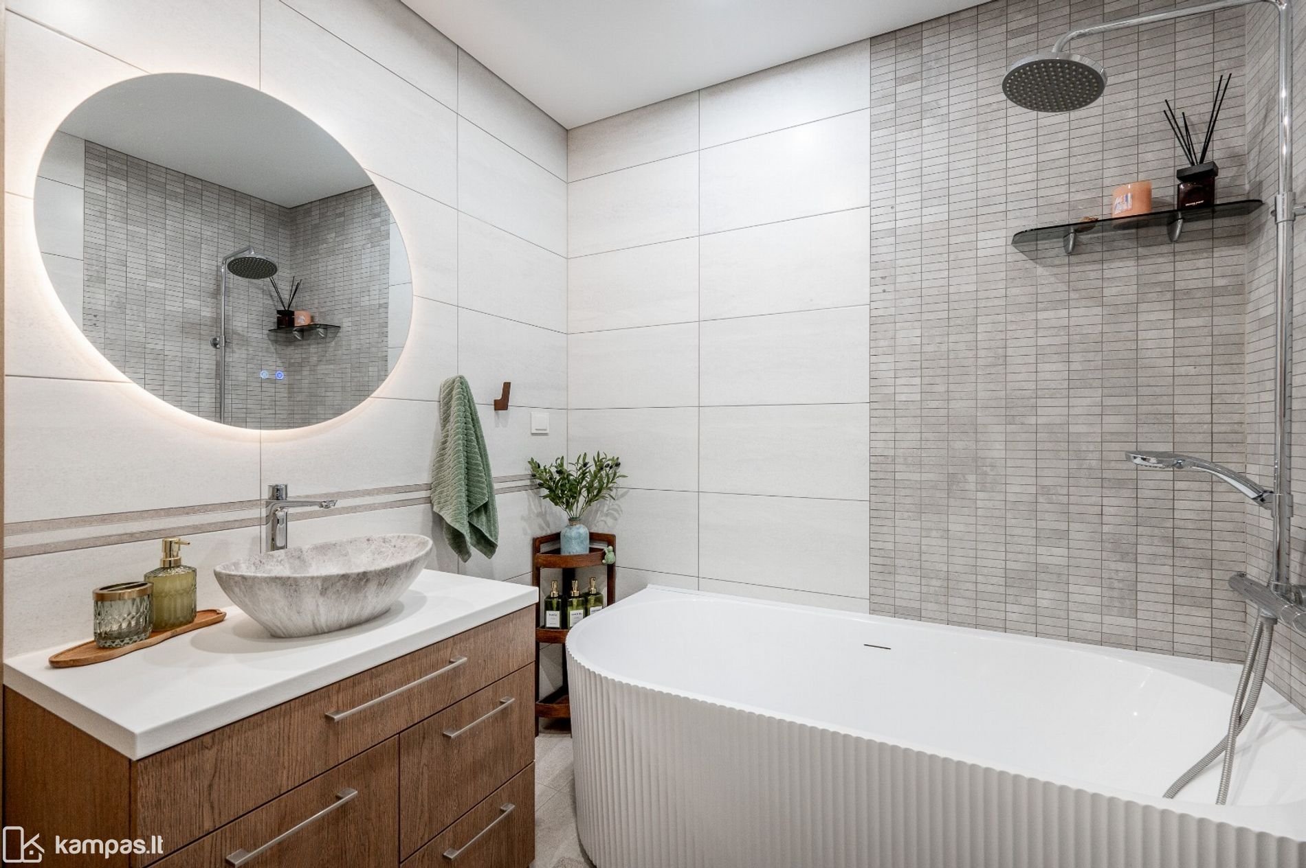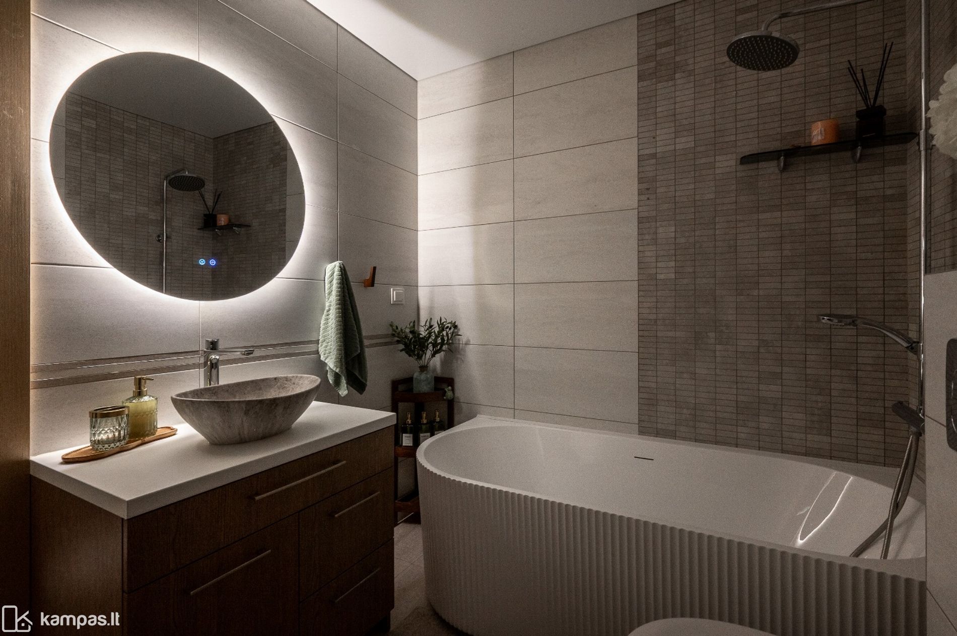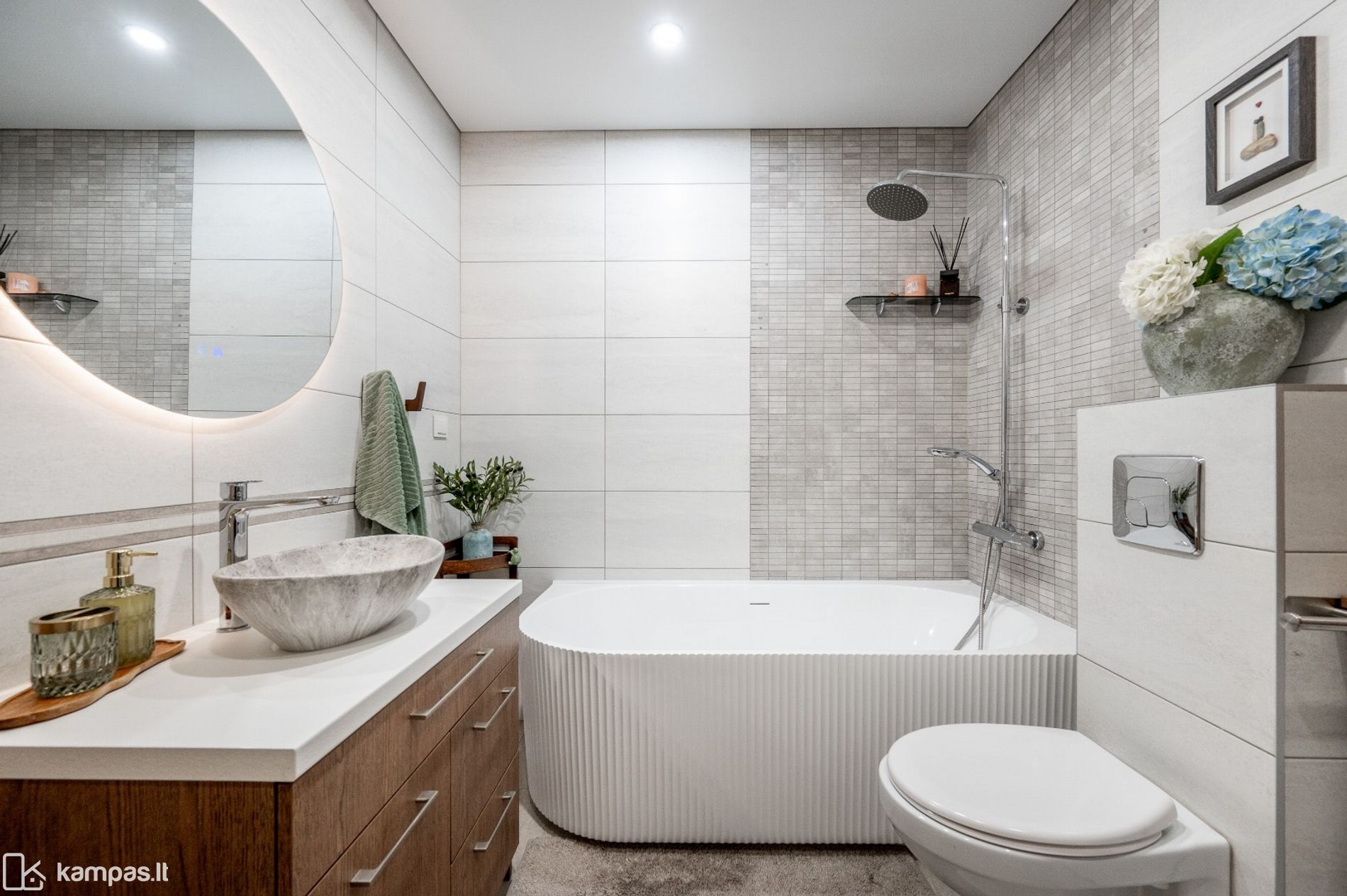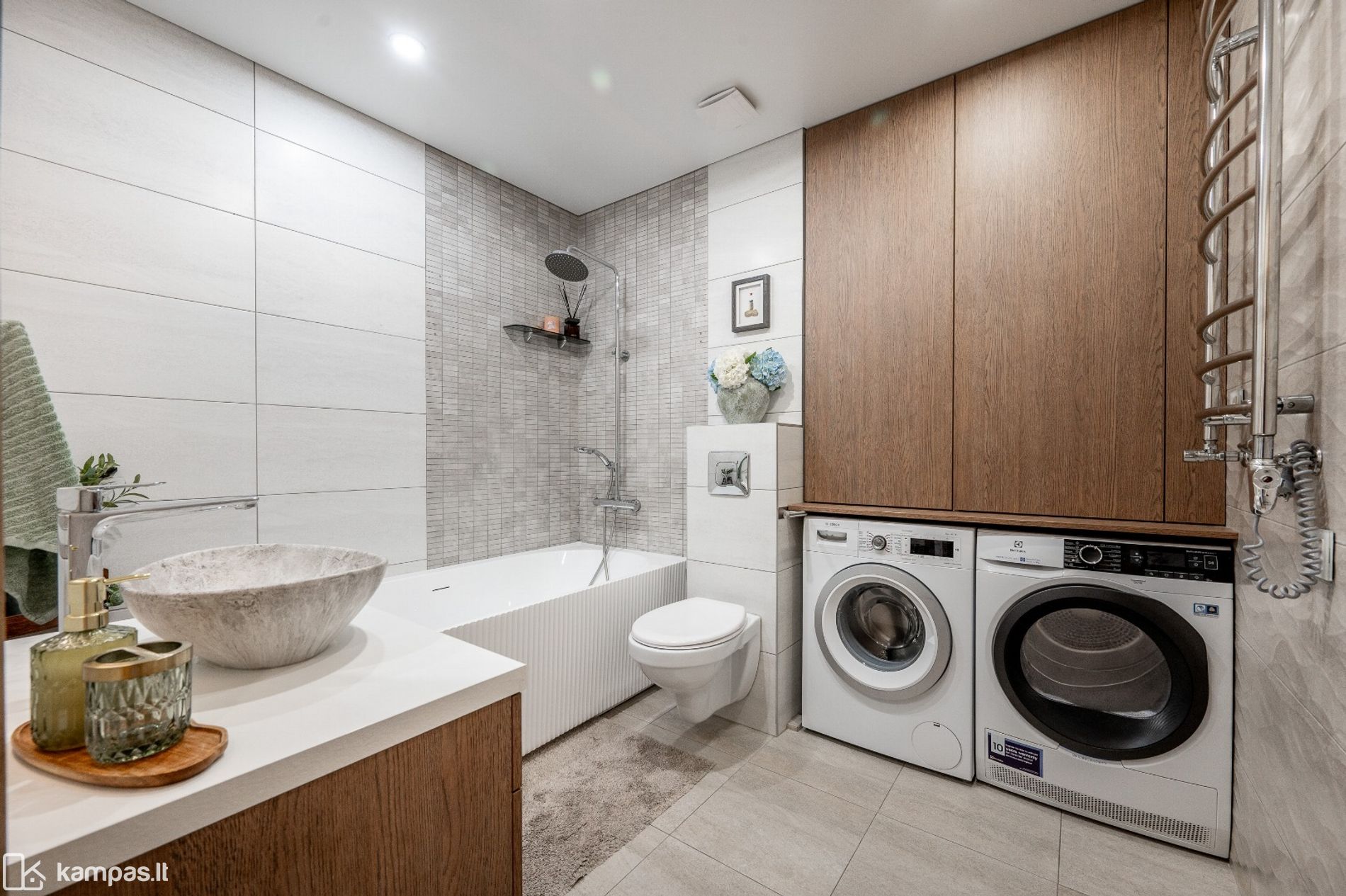 - Vonia: sumontuota skalbimo mašina ir džiovyklė, kokybiška santechnika, akmens masės praustuvas.