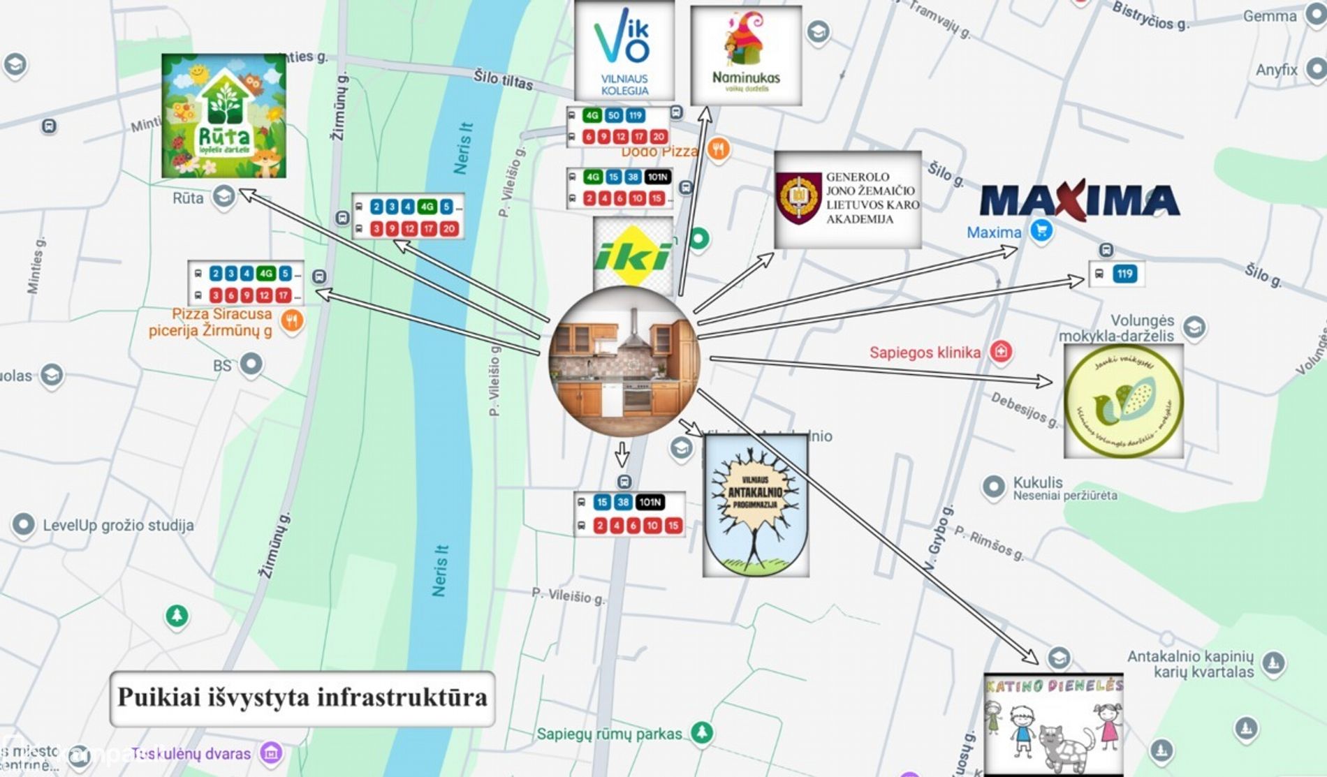 - Iki artimiausios mokymo įstaigos (Vilniaus Antakalnio progimnazija) ~ 100 m!