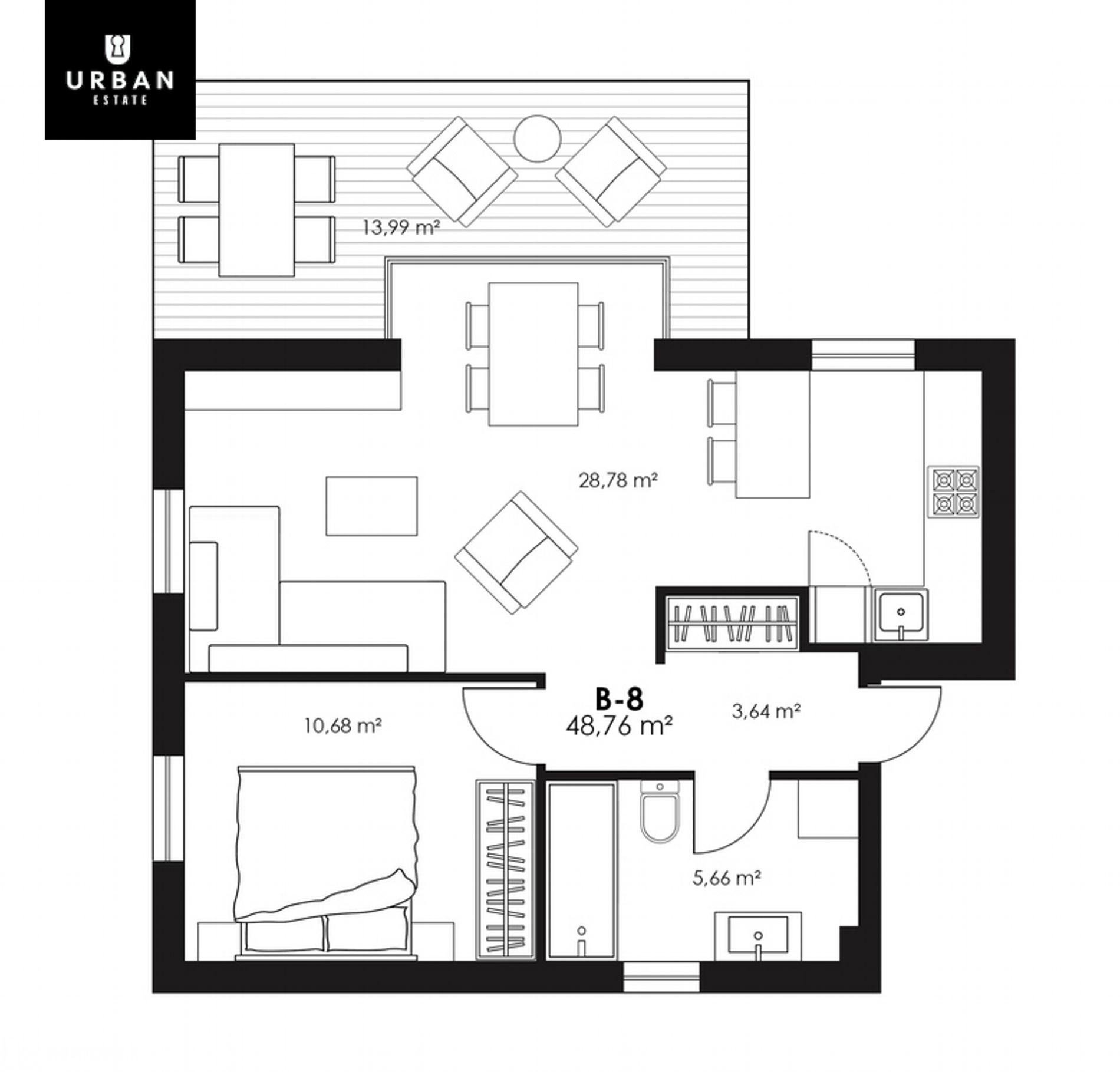 PARDUODAMAS 2-JŲ KAMBARIŲ ERDVUS BUTAS SU TERASA NAUJOS STATYBOS PROJEKTE MO MANUFAKTŪRA