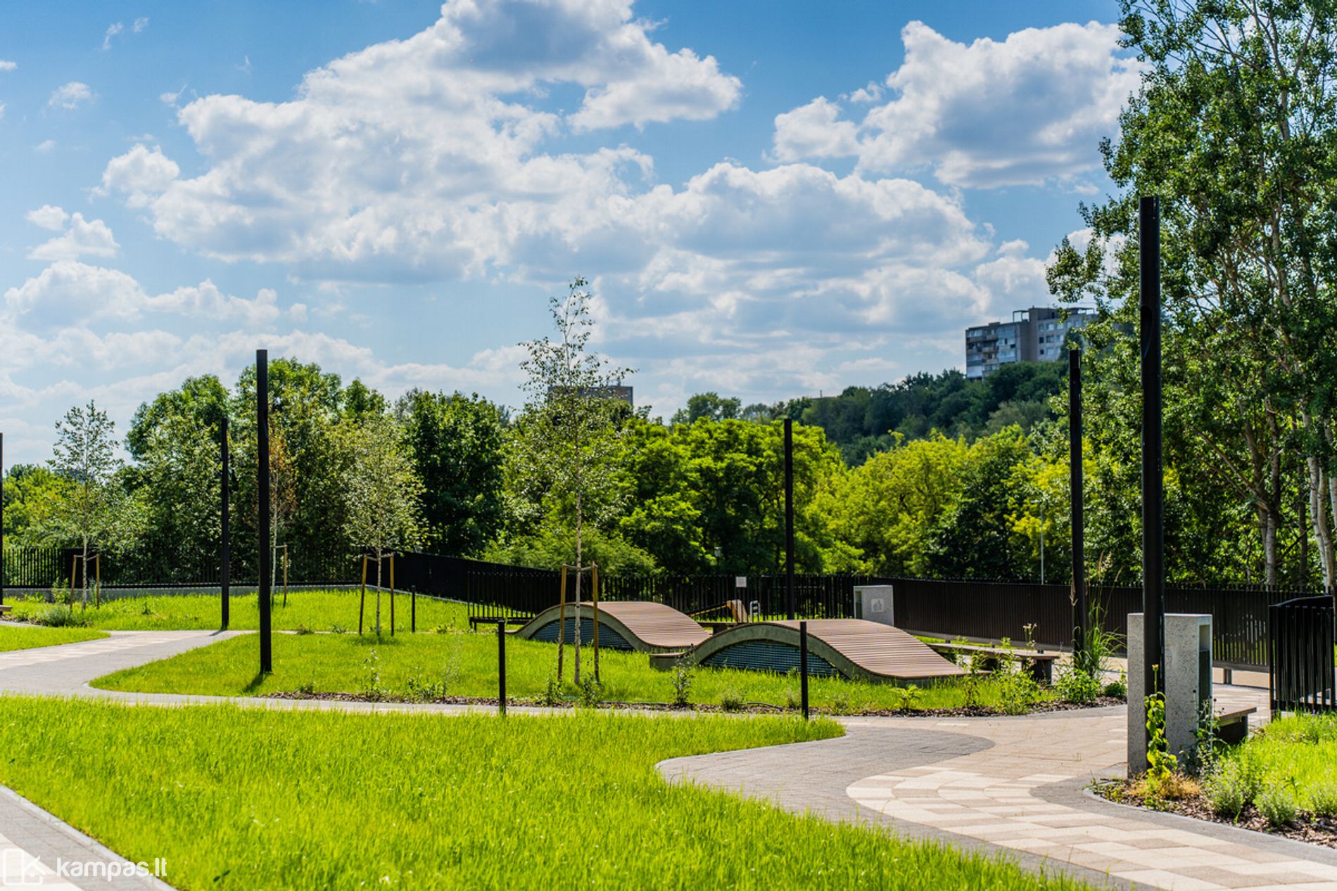 • Sutvarkyta saugi aplinka - uždaras, prižiūrimas ir jaukus kiemas su lauko apšvietimu, išpuoselėta veja, augalais, trinkelėmis grįstais takeliais, suoliukais. Projekto teritorijoje įrengtos vaizdo stebėjimo kameros.
