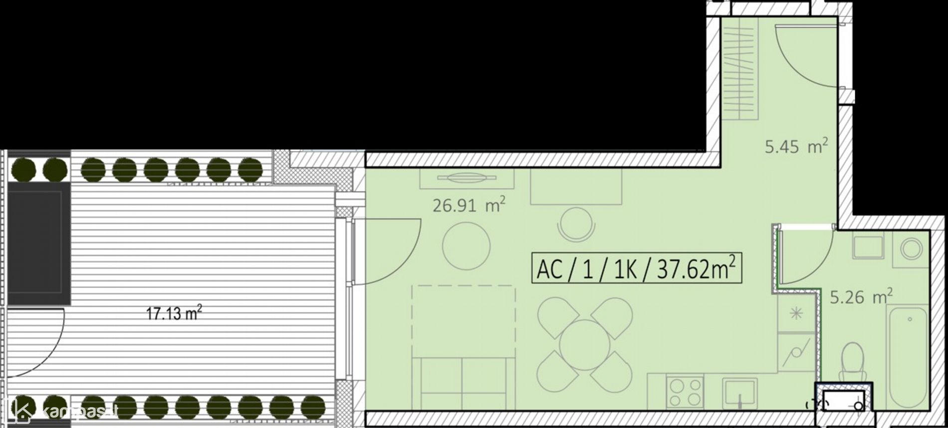 PARDUODAMAS 37 KV.M, 1 KAMBARIO BUTAS SU TERASA NAUJAME IŠSKIRTINĖS ARCHITEKTŪROS, A++ ENERGINĖS KLASĖS PROJEKTE ANT NERIES KRANTO VILEIŠIO G., ANTAKALNYJE.