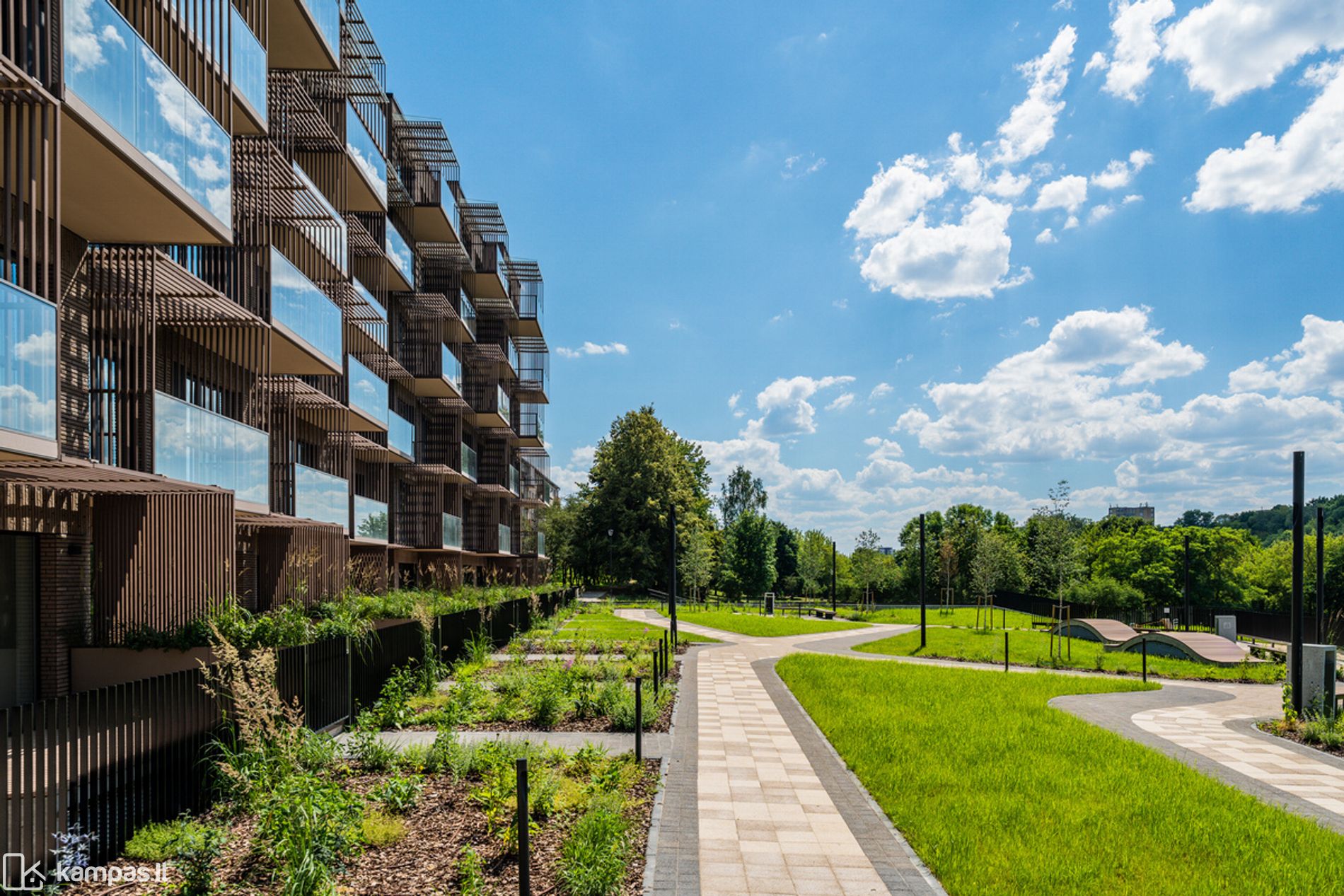 • Sutvarkyta saugi aplinka - uždaras, prižiūrimas ir jaukus kiemas su lauko apšvietimu, išpuoselėta veja, augalais, trinkelėmis grįstais takeliais, suoliukais. Projekto teritorijoje įrengtos vaizdo stebėjimo kameros.