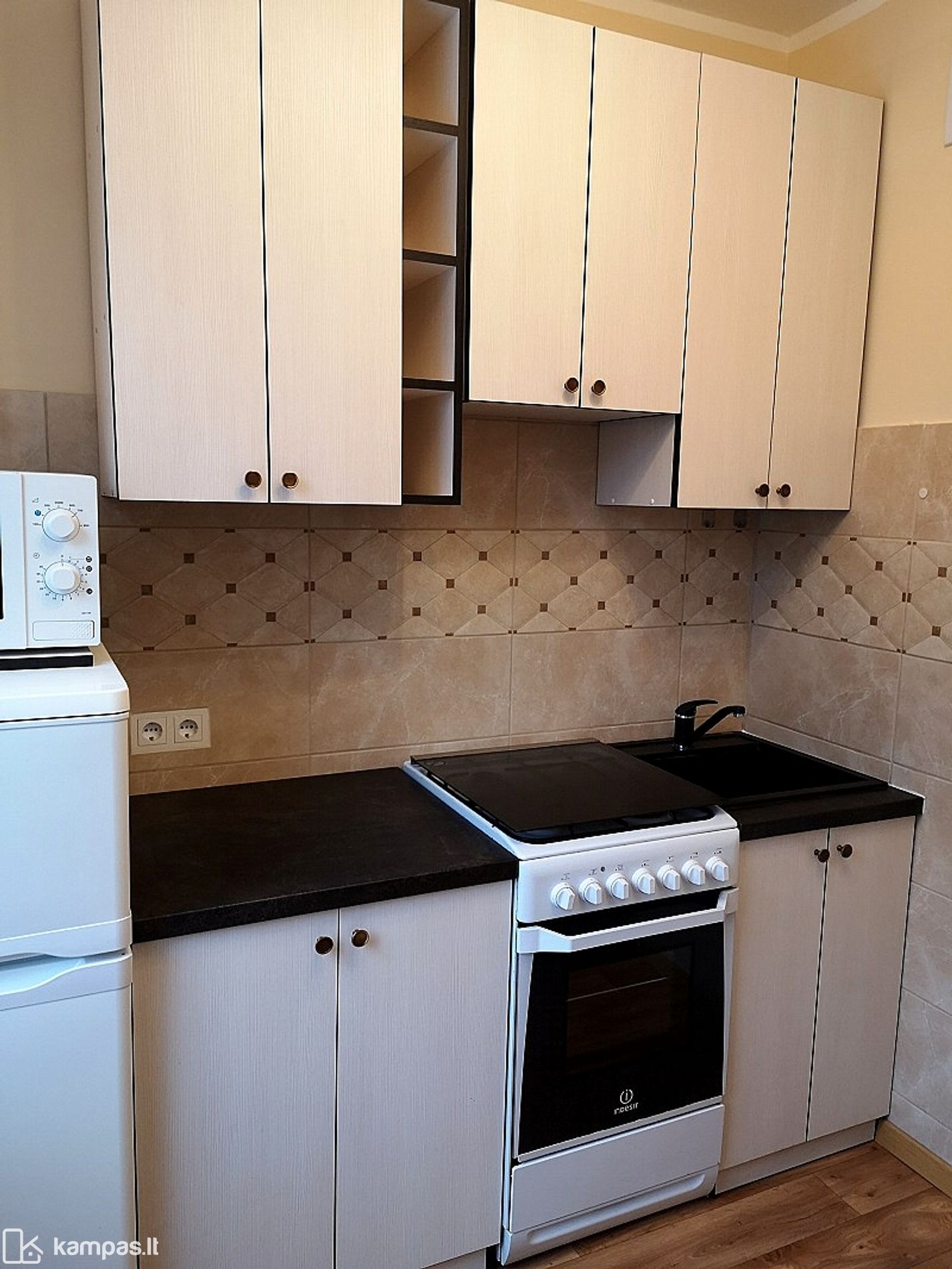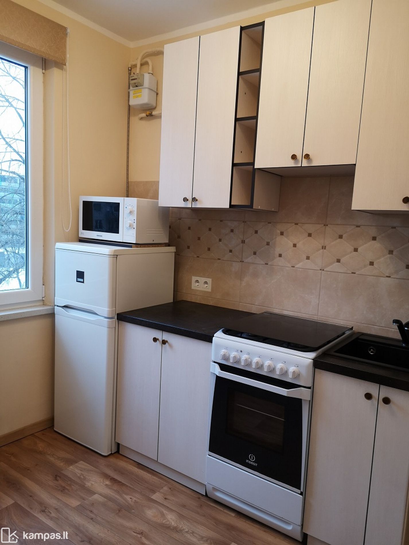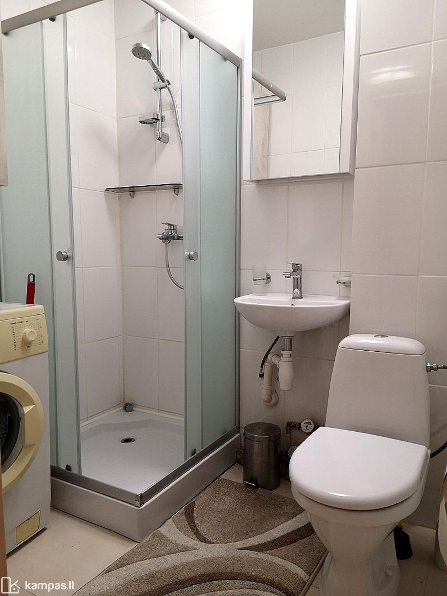 Virtuvės komplektas tvarkingas, yra šaldytuvas, viryklė. Sanmazge įrengtas dušas, yra skalbimo mašina.