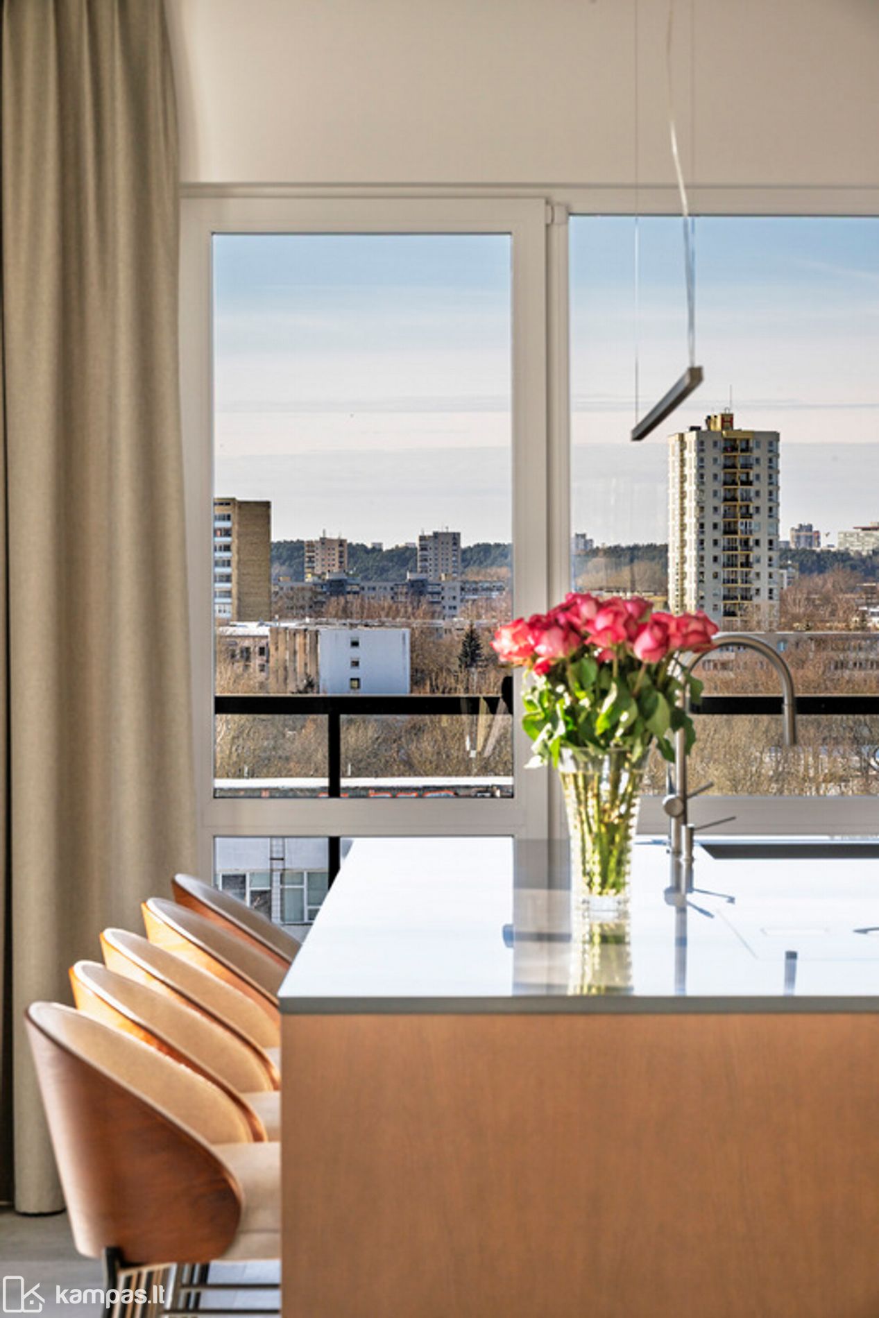 Tai "penthouse" tipo butas, viršutiniame namo aukšte, kur pro langus atsiveria nuostabūs Vilniaus miesto, Antakalnio miškų ir Gedimino pilies vaizdai. 180 laipsnių panorama pro didžiulius buto langus leidžia sulėtinti laiką ir pasijusti lyg pakilus aukščiau - virš verdančio miesto gyvenimo.