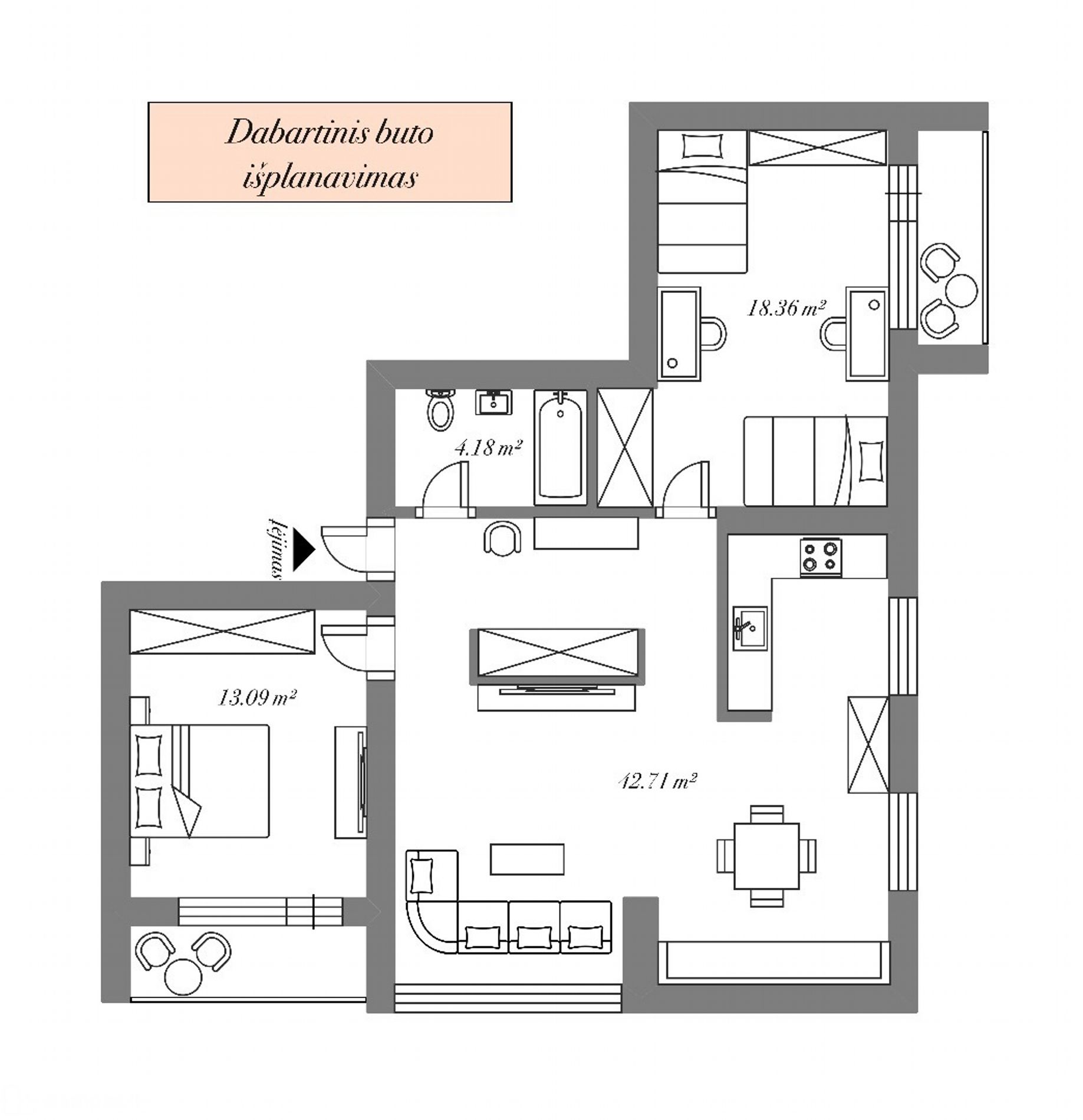 • 3 kambariai, galima nesudėtingai perplanuoti į 4 kambarius;