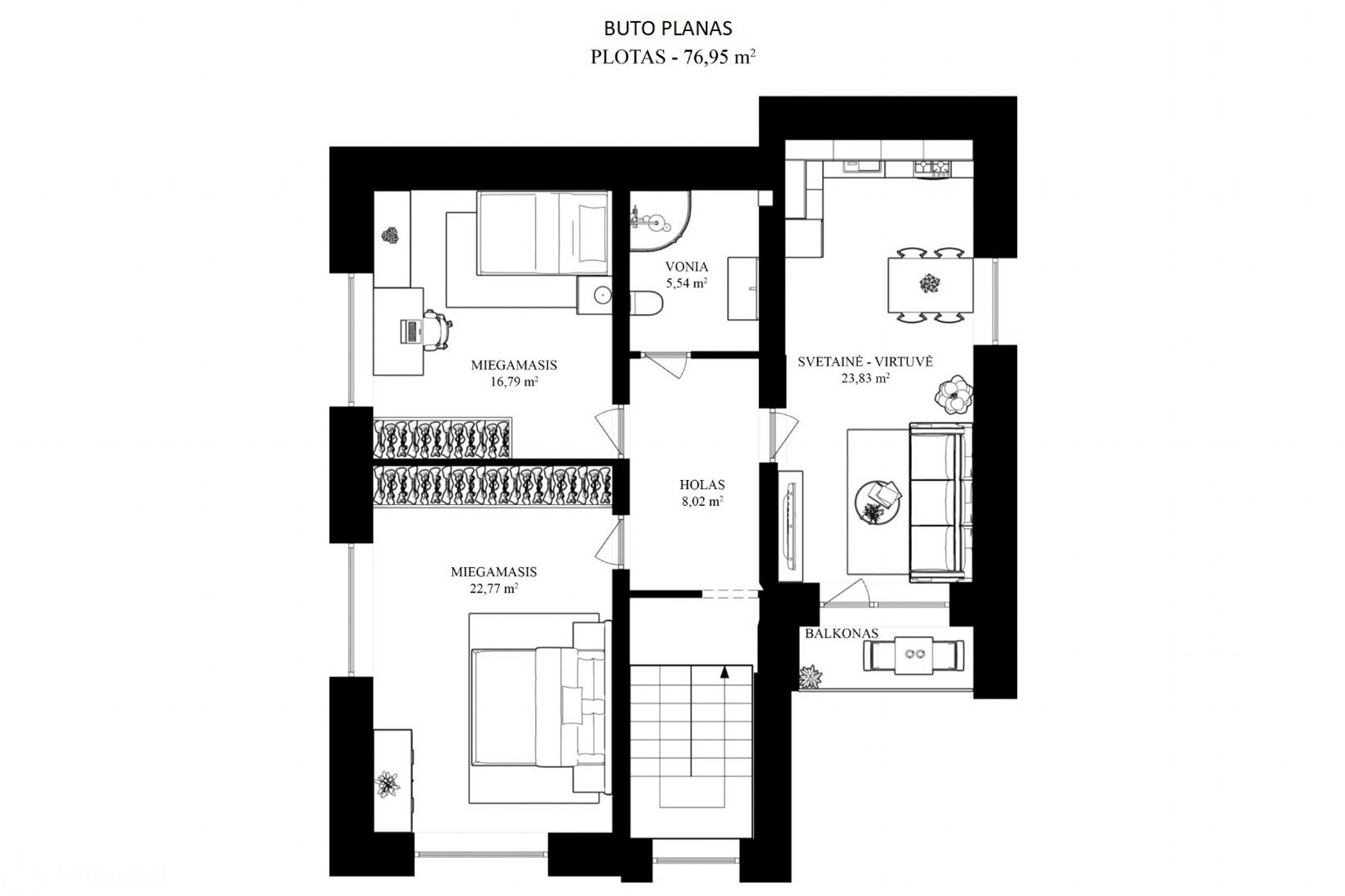 Bendras buto plotas – 77 kv. m. + rūsio dalis 50kv.m