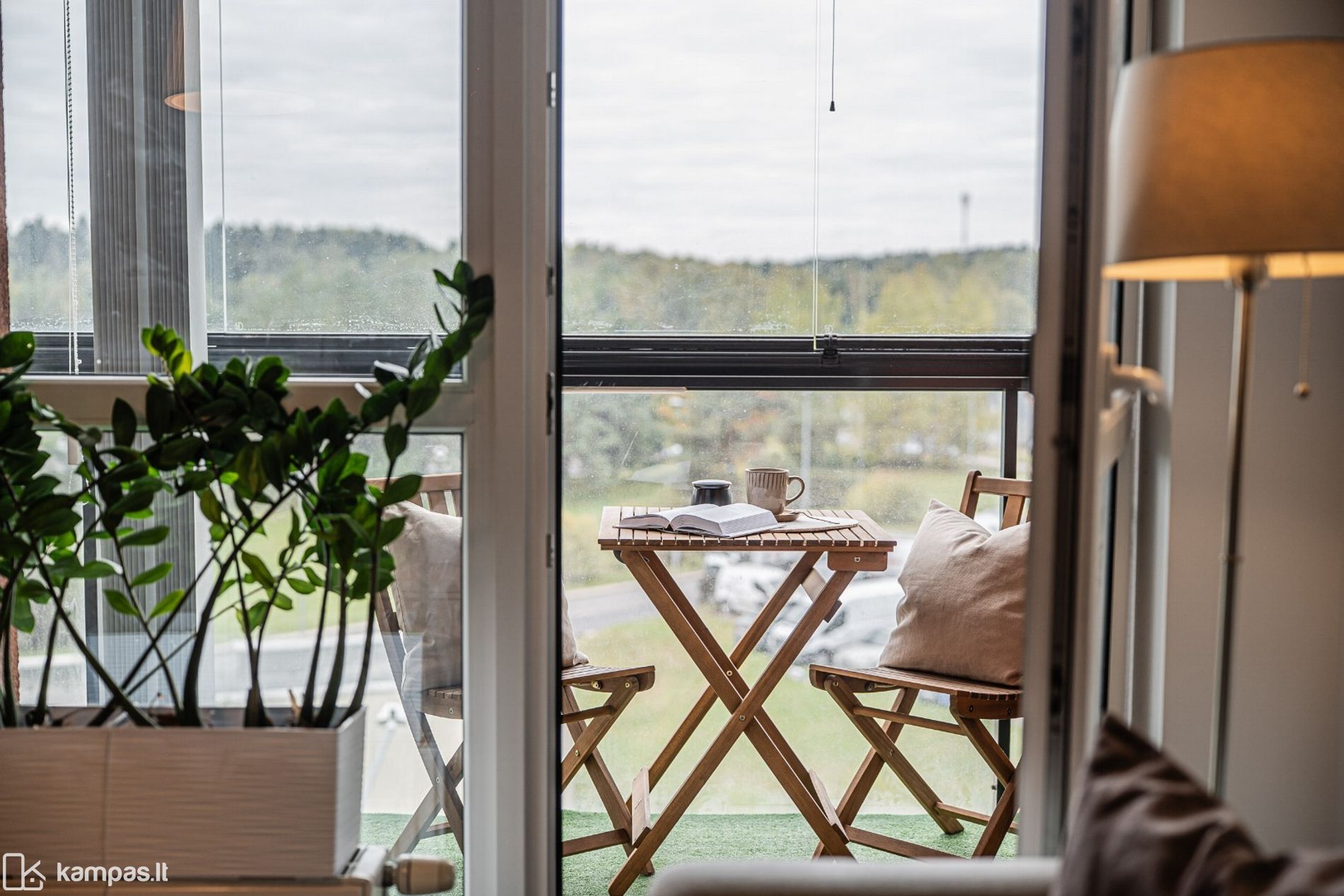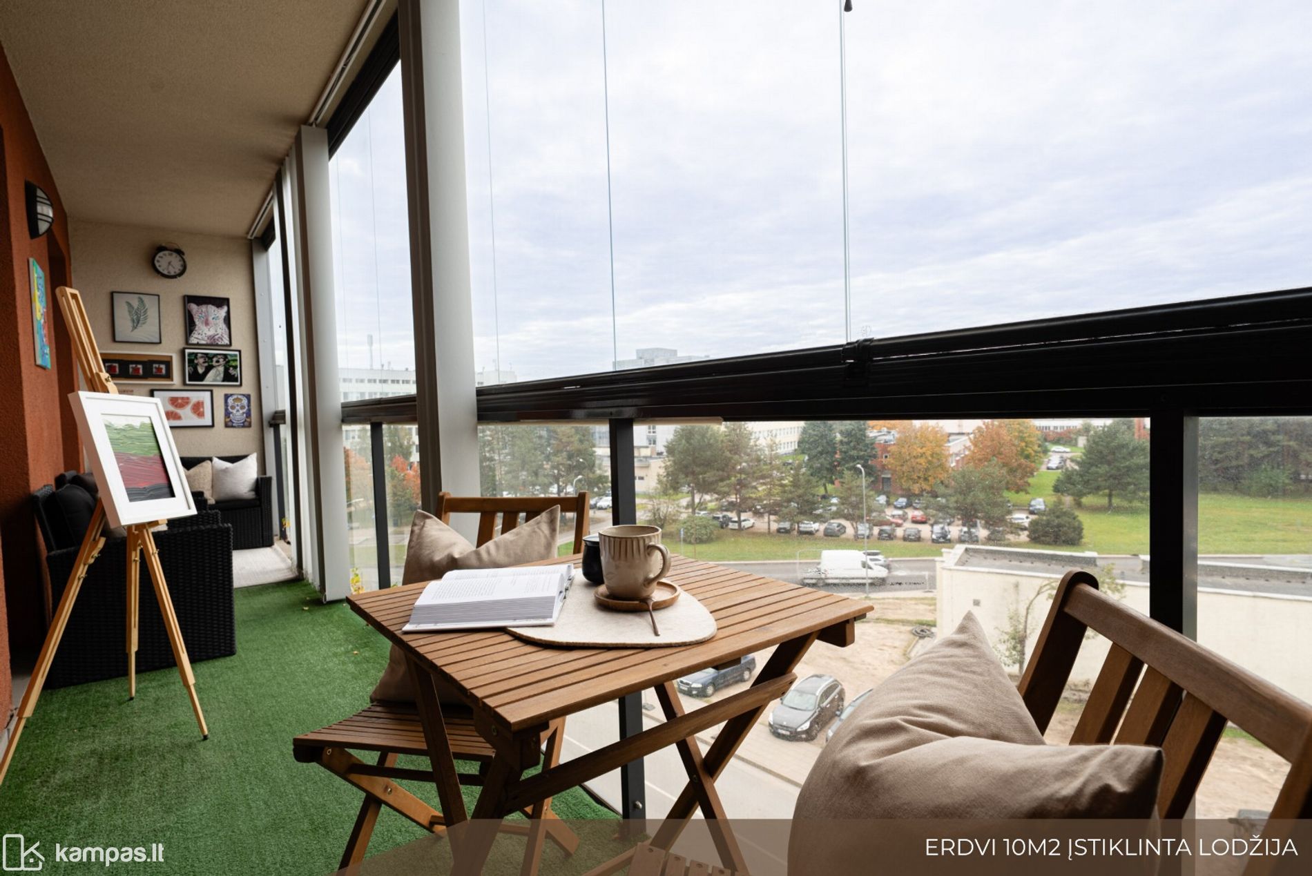 - Erdvus įstiklintas 10 m2 balkonas su suformuota poilsio erdve.