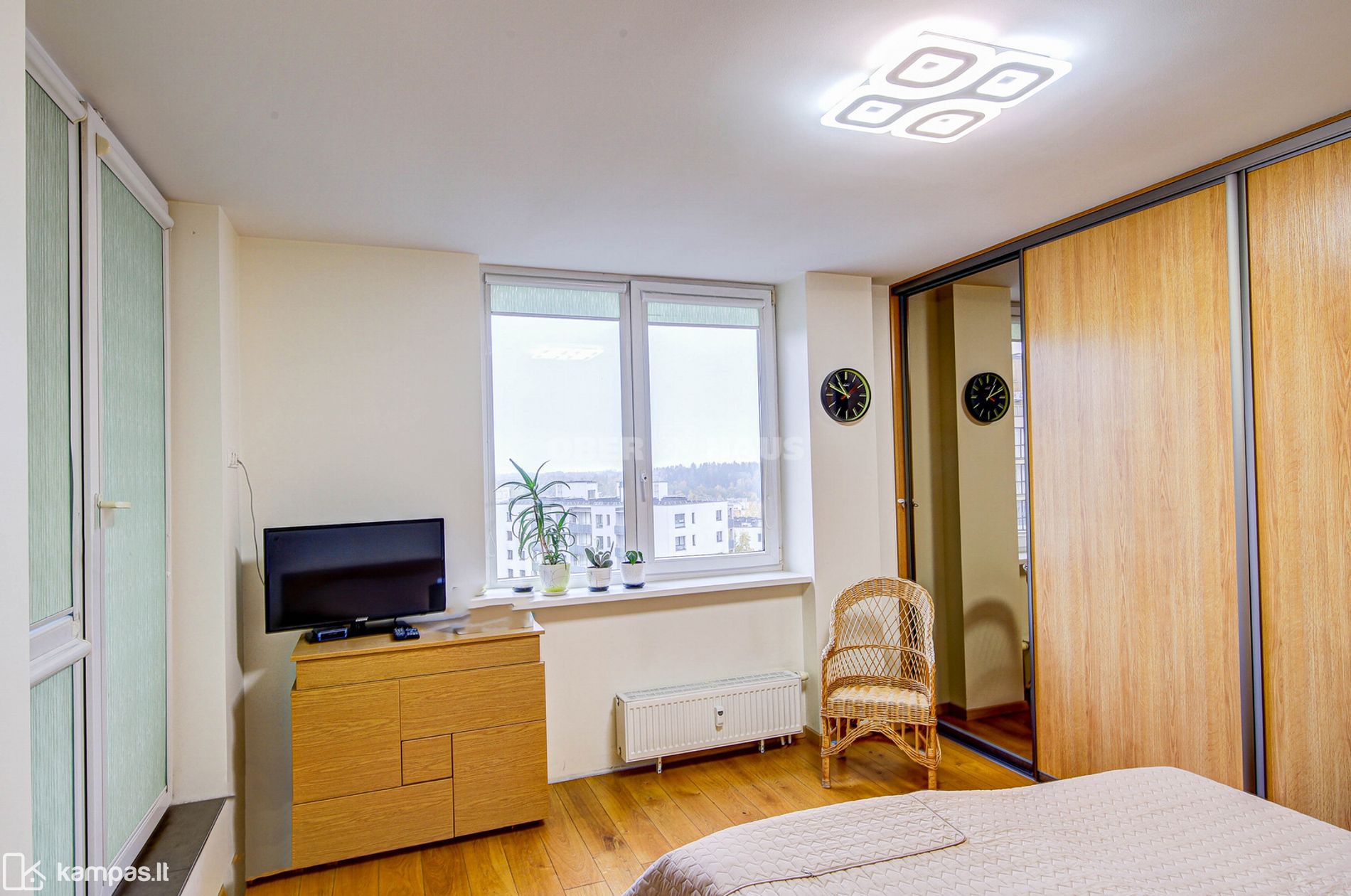 Butas yra septintame aukšte iš 7, du tūkstančiai septintų metų statybos name. Mūrinis namas, atokiau nuo pagrindinių gatvių. Butas šiltas, šviesus, erdvus. 81 kvadratinis metras, gerai suplanuotas, galima, papildomai įrengti dar vieną kambarį (planas pridėtas prie nuotraukų), yra didelis balkonas ir prie miegamojo suprojektuota erdvi, 6 kvadratinių metrų, įstiklinta terasa. Langai orientuoti į tris puses, rytus, pietus ir šiaurę. Butas tylus, su kaimynais yra tik viena bendra siena. Aplink daug gamtos ir miškų. Patogus susisiekimas su miesto centru. Po namu yra parkavimo vieta automobiliui už papildomą kainą.