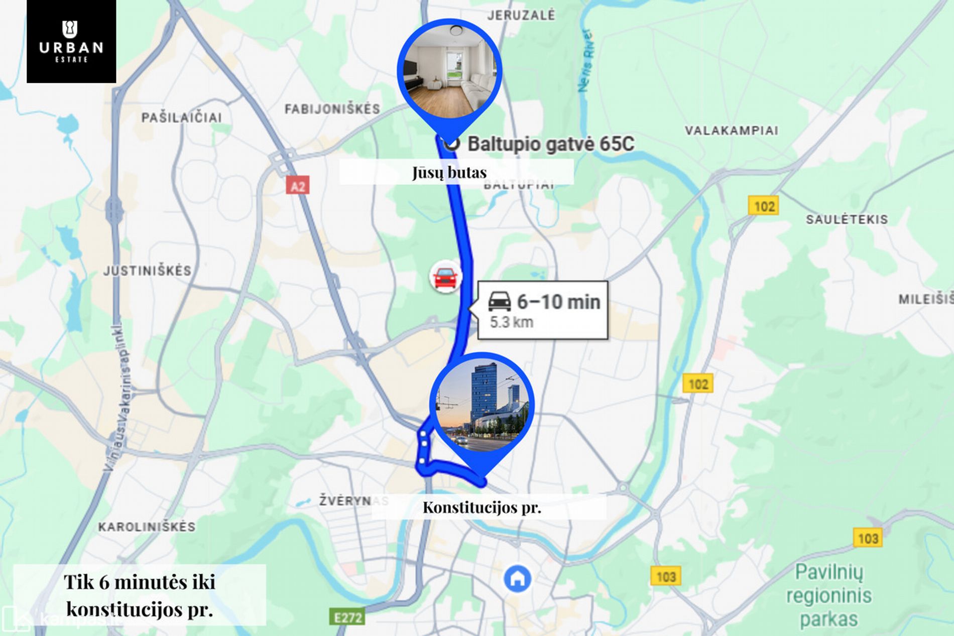 • Patogus susisiekimas – miesto centras pasiekiamas per 5–10 min.