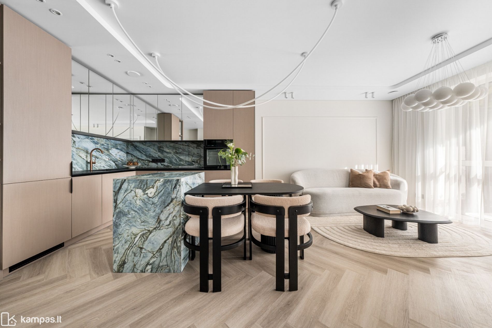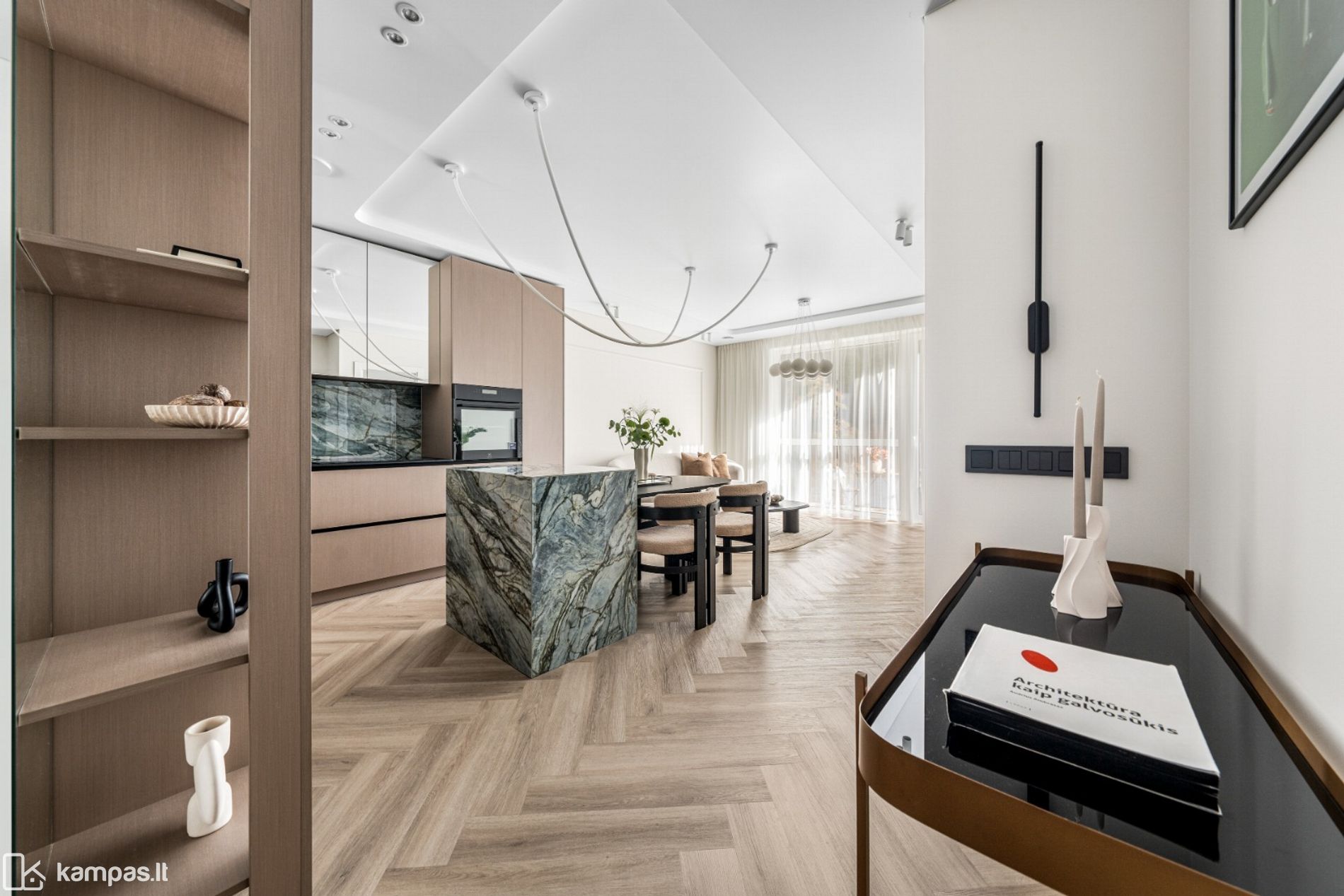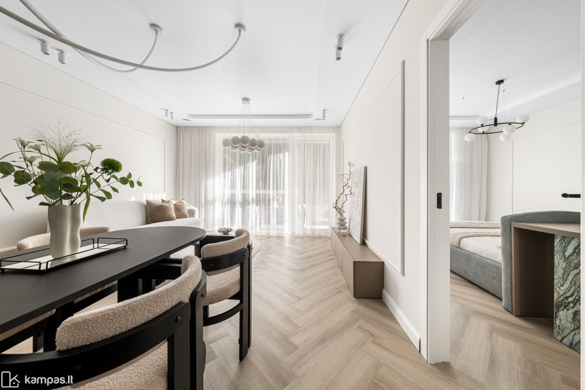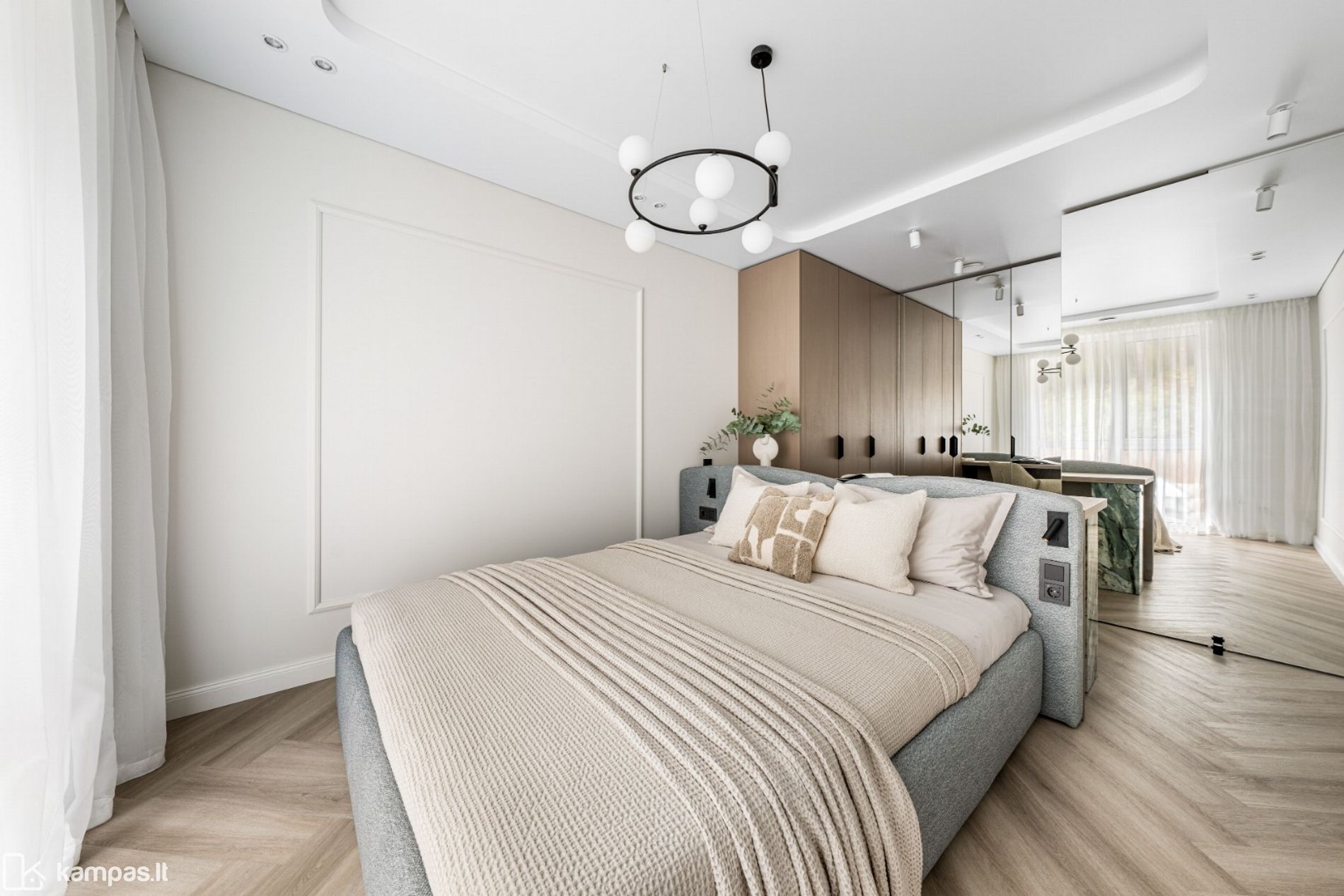 PARDUODAMAS ERDVUS IR DIZAINERIŲ PAGALBA ITIN KOKYBIŠKAI BEI FUNKCIONALIAI ĮRENGTAS 2-IEJŲ KAMBARIŲ BUTAS MIŠKO APSUPTYJE NAUJAJAME PROJEKTE "KERŲ KERAI".