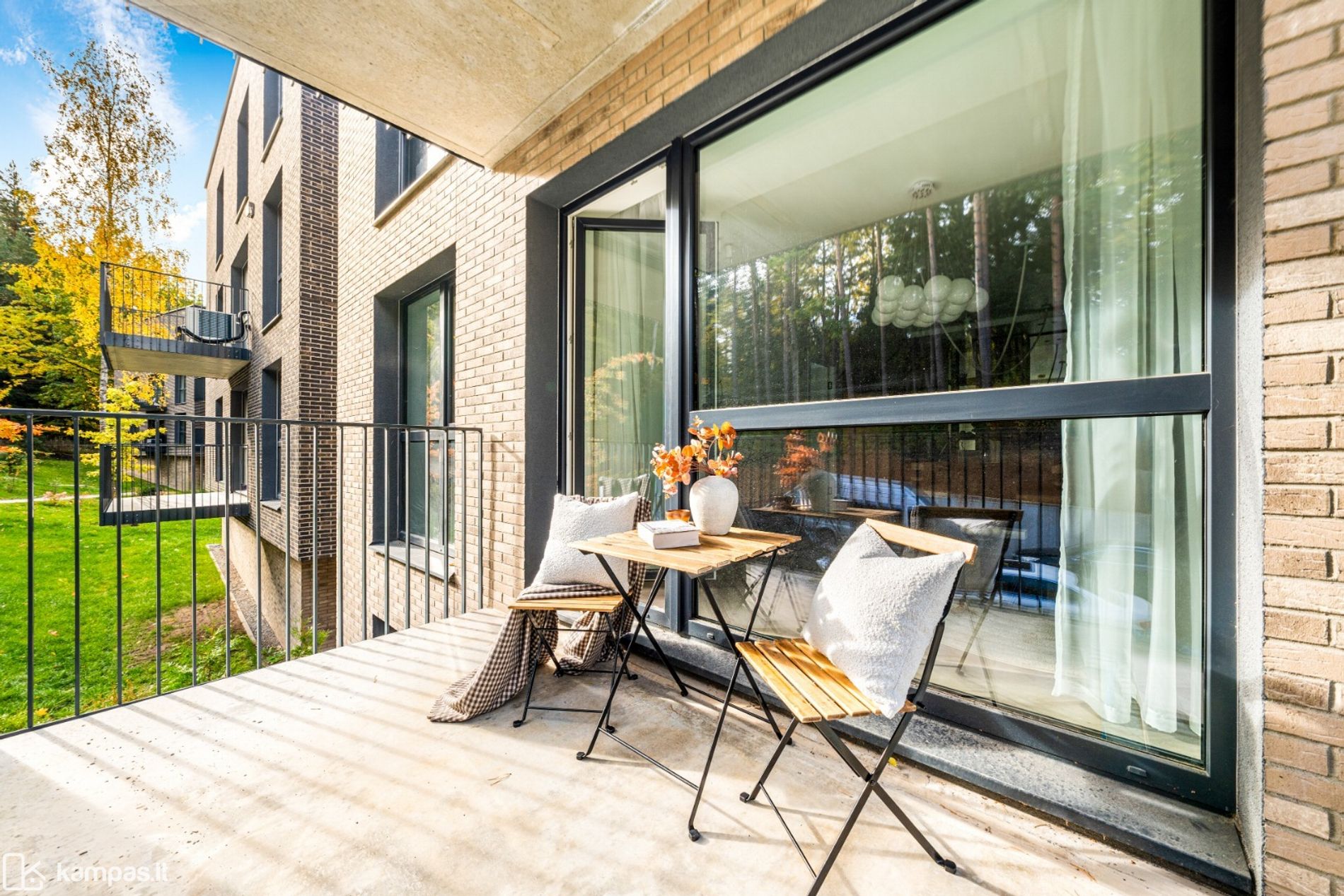 - Vitrininiai langai su vaizdu į mišką, erdvus balkonas;