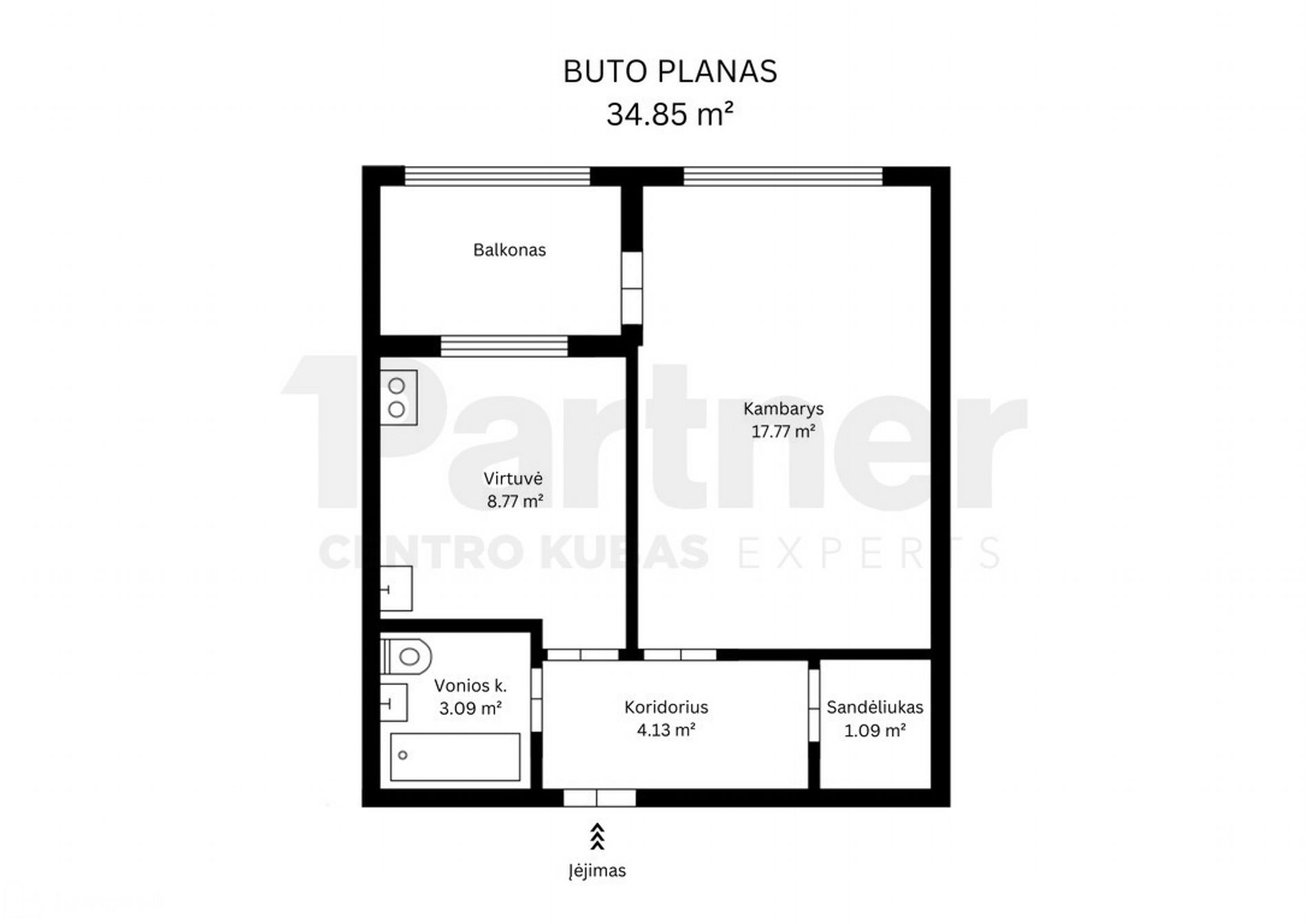 - Bendras plotas – 34.85 kv. m;