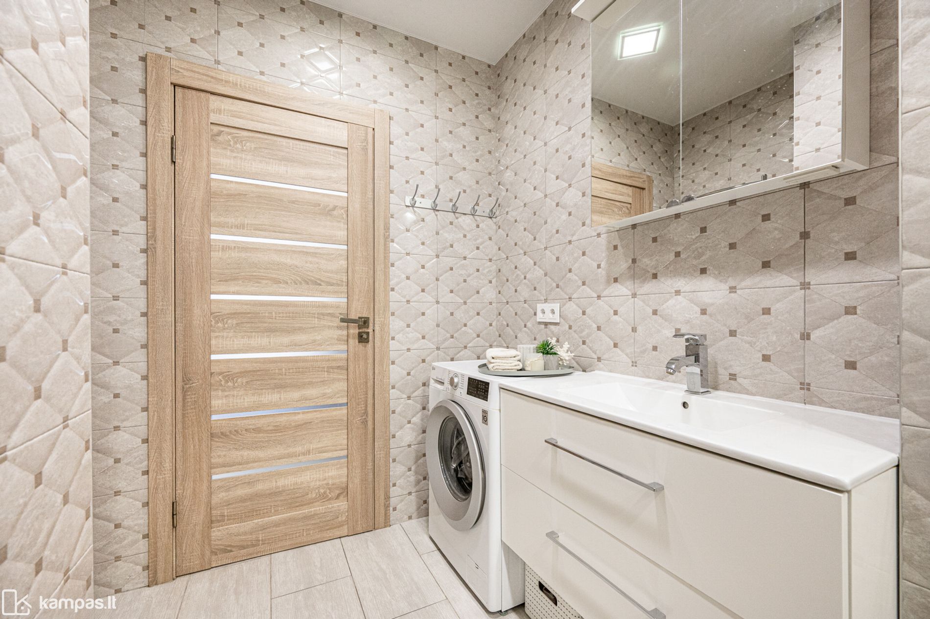 Parduodamas su visa buitine technika – skalbimo mašina, šaldytuvu, virykle, indaplove ir kitais prietaisais;