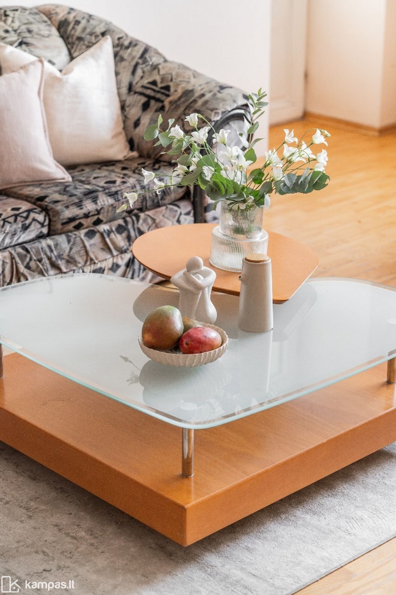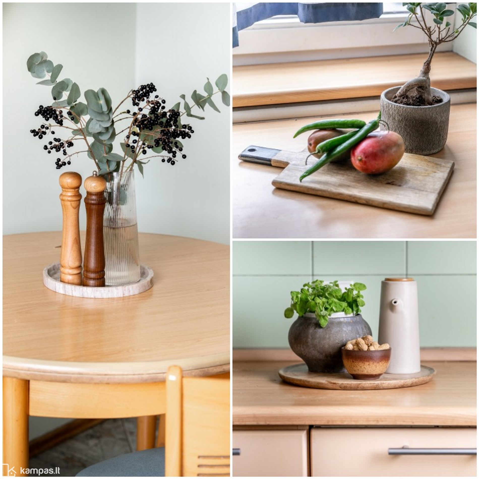 • Grindys: parketas, san.mazguose – plytelės.