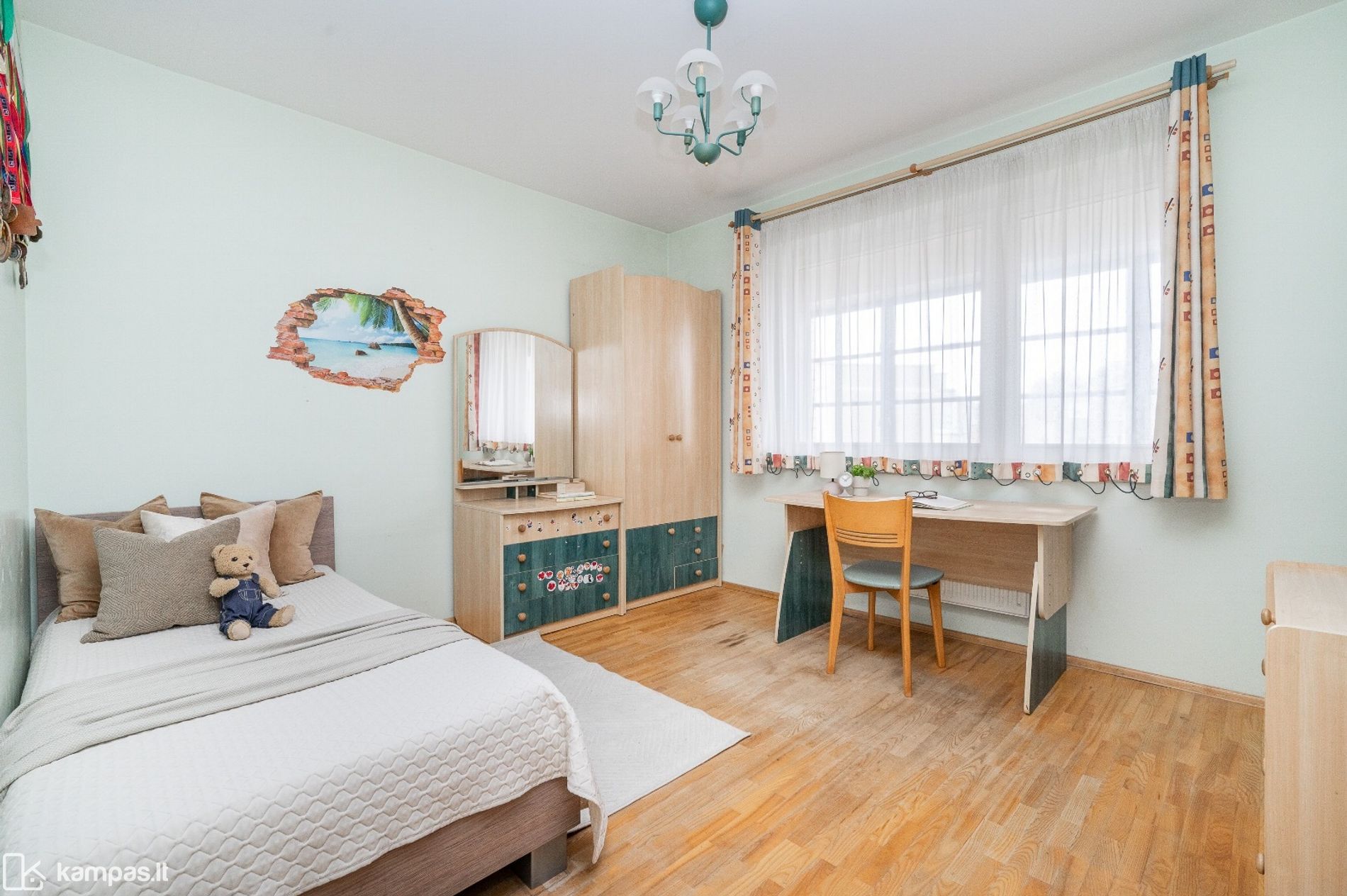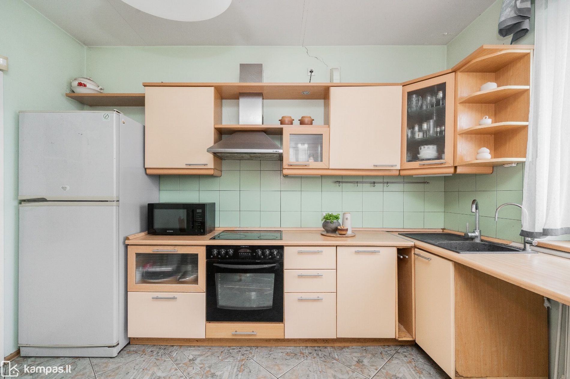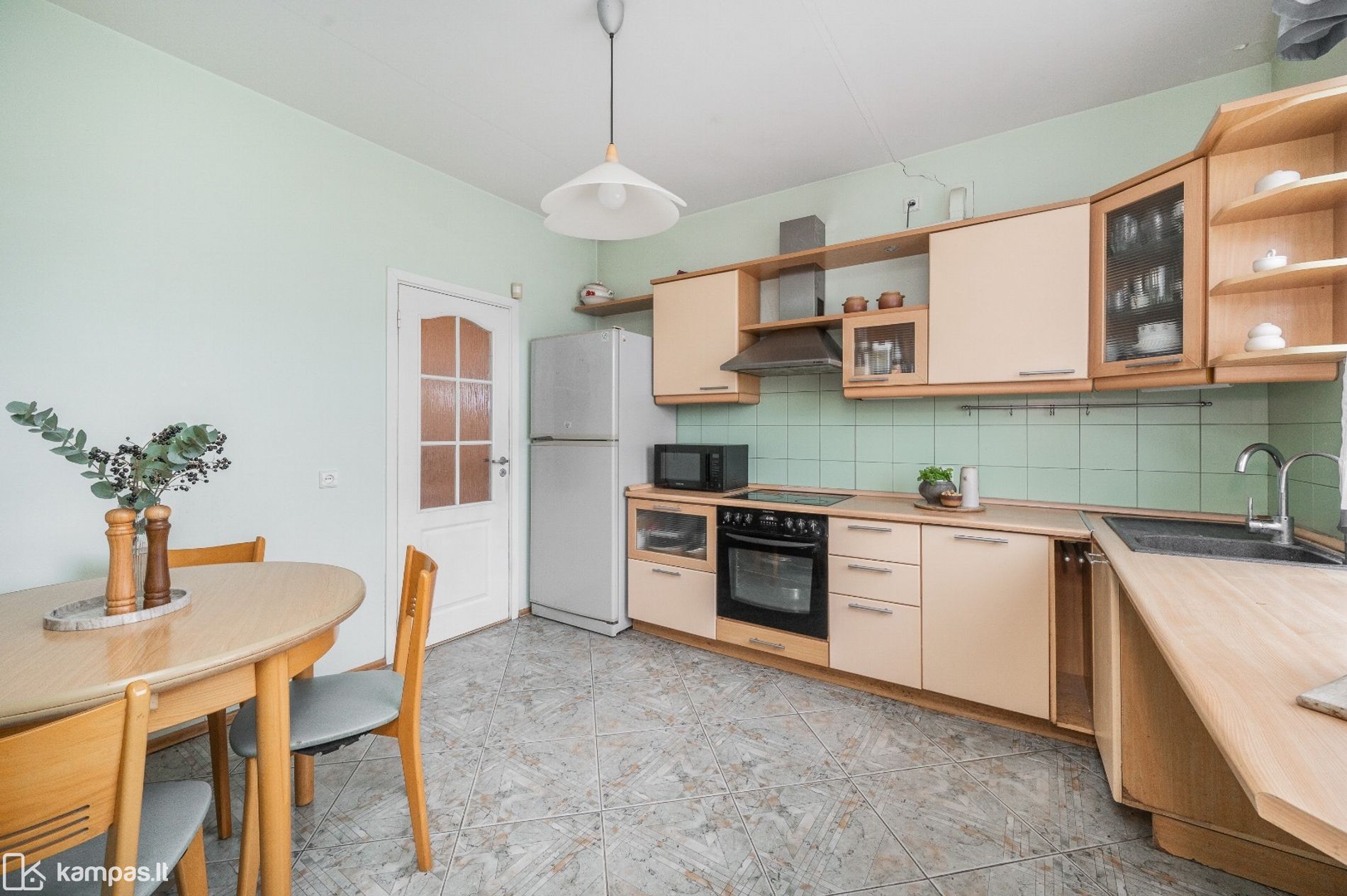 • Sienos: dažytos, san.mazge ir virtuvėje – plytelės;