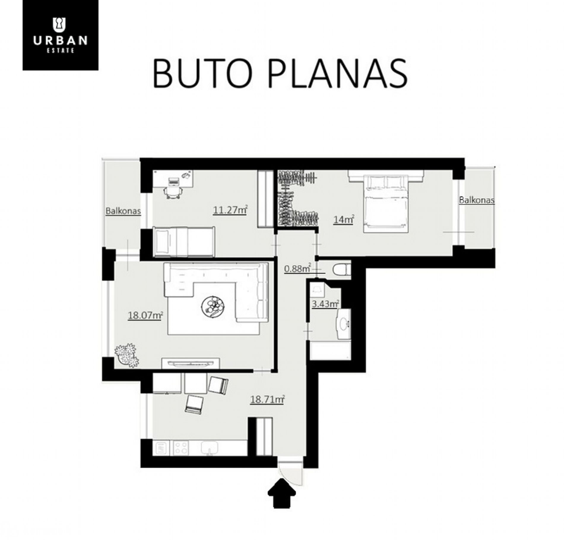 - Butas su dviem įstiklintais balkonais, į kuriuos pateksite iš svetainės ir miegamojo kambario.
