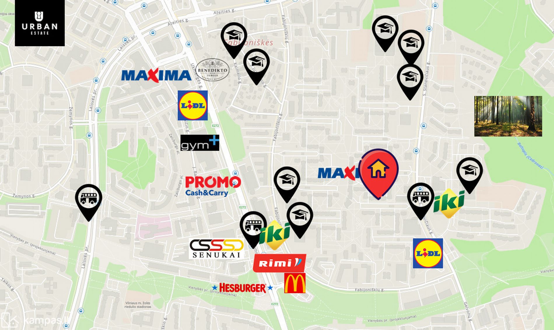- Itin patogi vieta gyvenimui, nes vos žengę namų duris akimirksniu pasieksite mokymo įstaigas, prekybos centrus, viešojo transporto stoteles ir visus kitus reikalingus objektus.