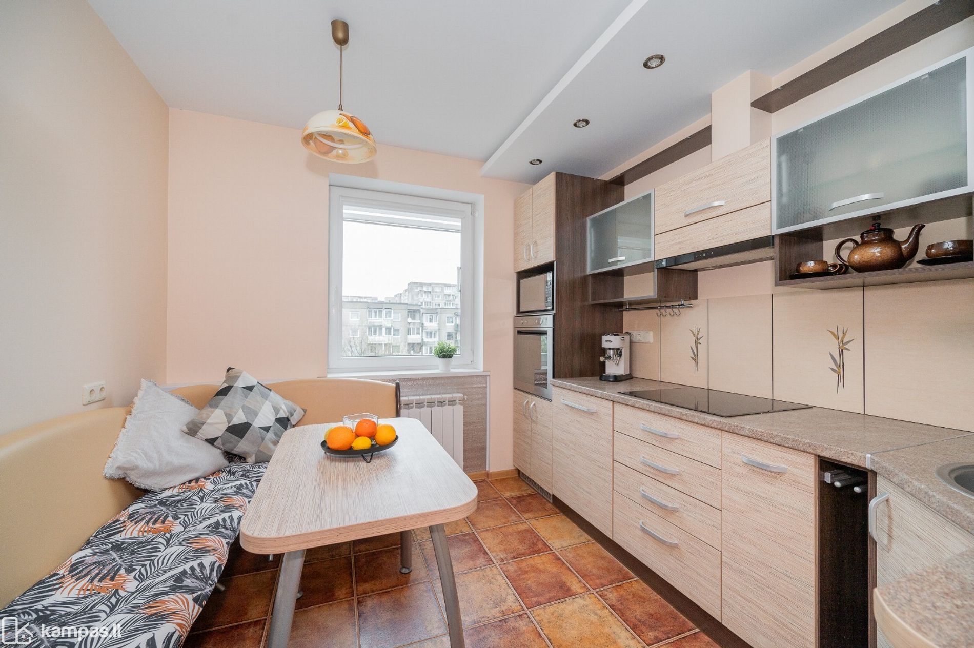 Šviesus ir patogaus išplanavimo butas laukia naujų šeimininkų. Trys izoliuoti kambariai užtikrina privatumą, virtuvė – atskira, naujai įrengta ir labai funkcionali. Atskiri vonios kambarys bei WC. Erdvus koridorius.