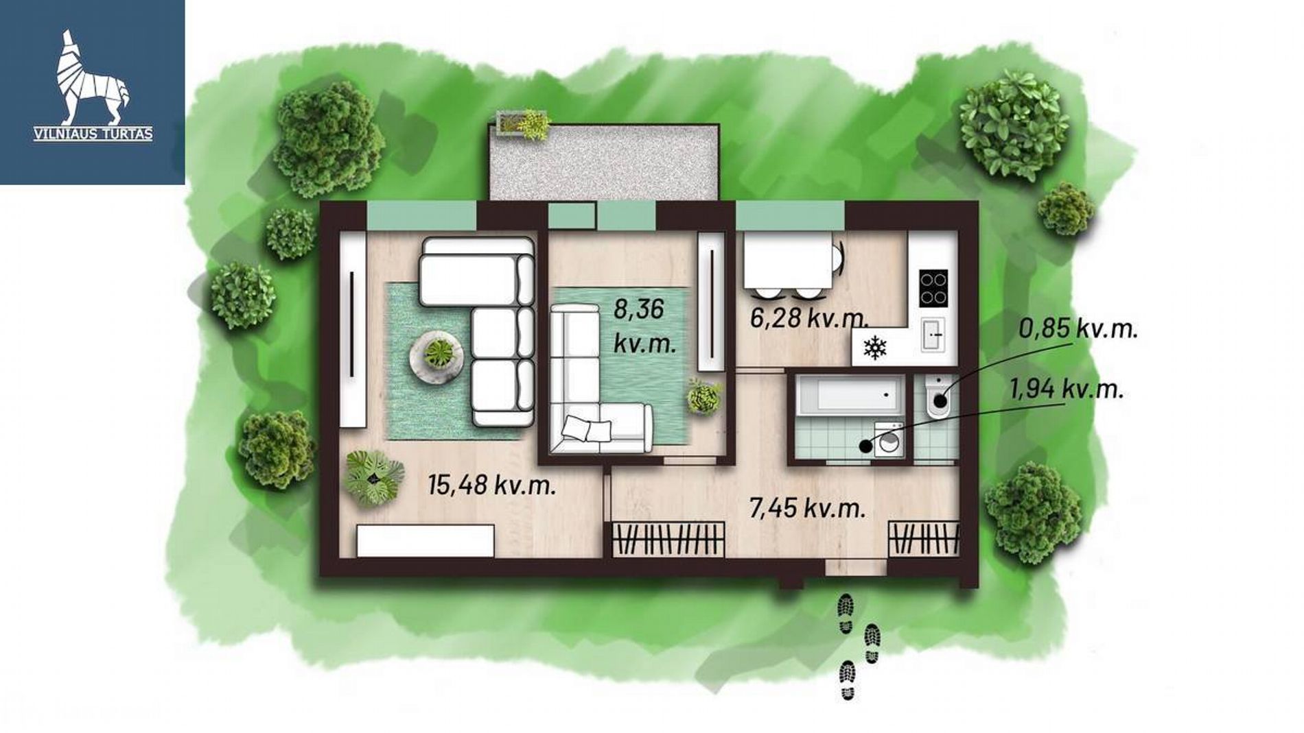 Du izoliuoti kambariai – patogu tiek šeimai, tiek nuomai;