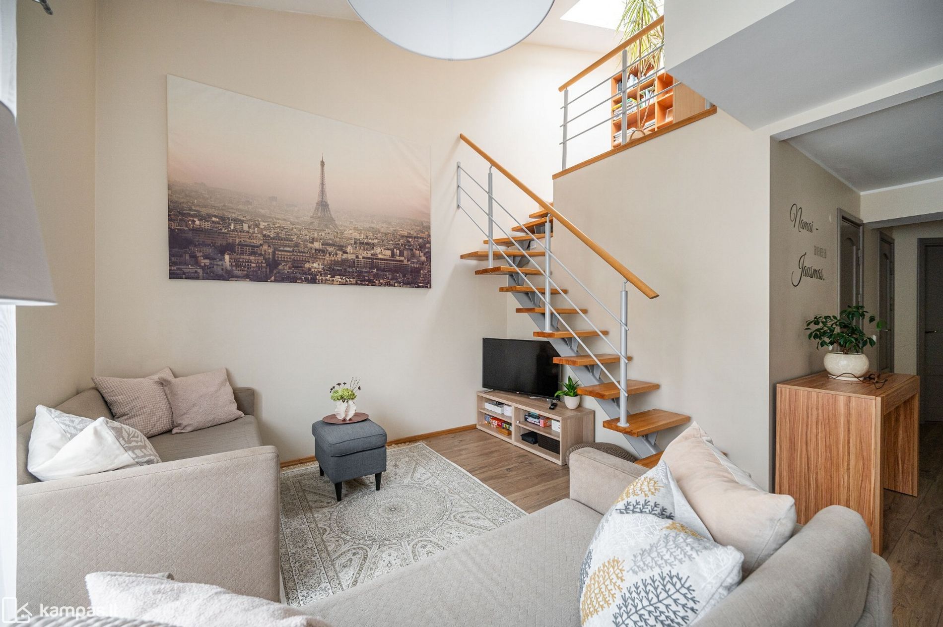 PARDUODAMAS ŠVIESUS IR JAUKUS 4 KAMBARIŲ BUTAS SU MANSARDINIU AUKŠTU — APSUPTAS ŽALUMOS IR RAMYBĖS, IDEALI VIETA JŪSŲ ŠEIMAI!