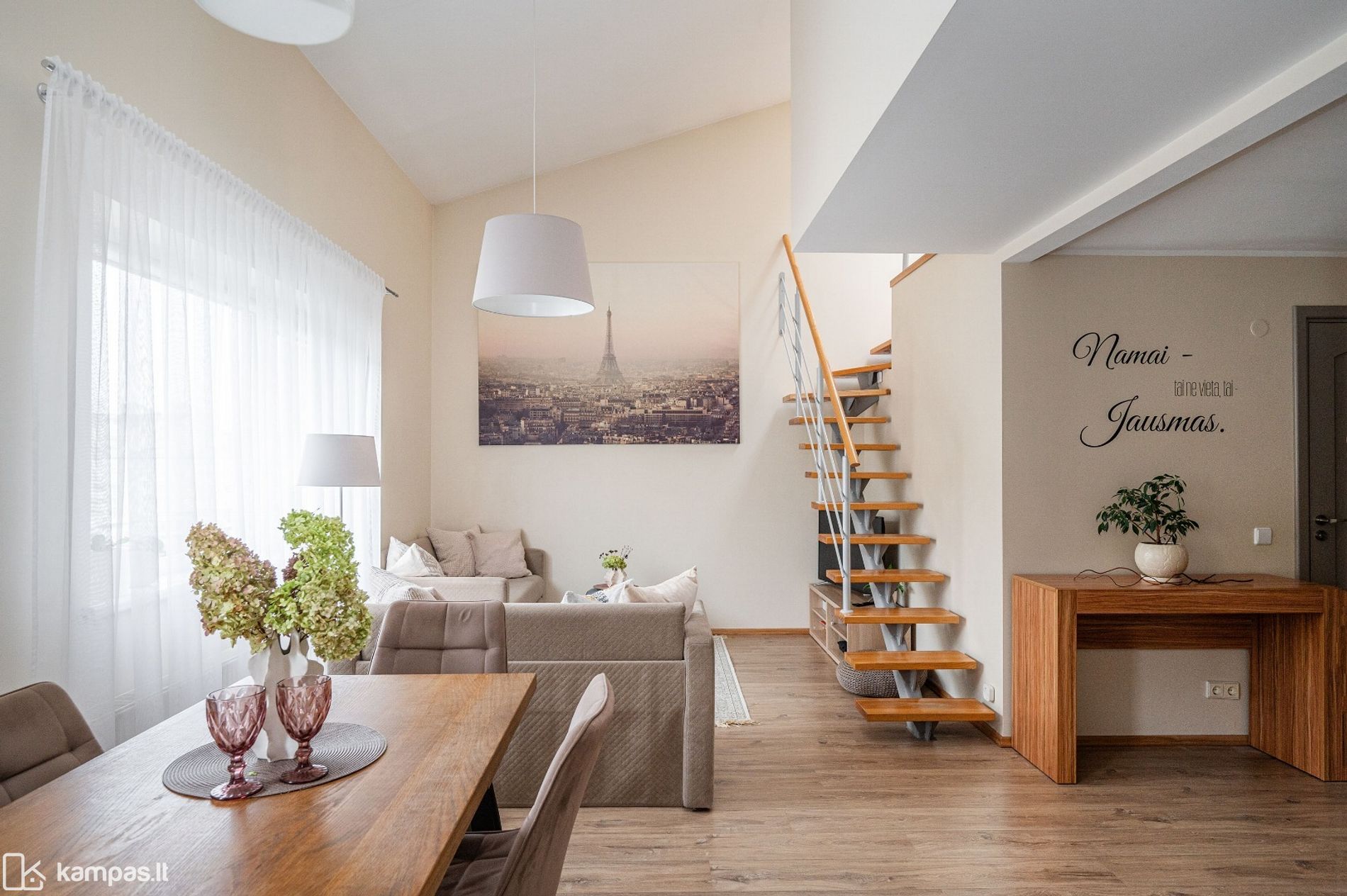 • Erdvus svetainės ir virtuvės sujungimas su valgomojo zona – puiki vieta šeimos vakarams ar draugų susitikimams;