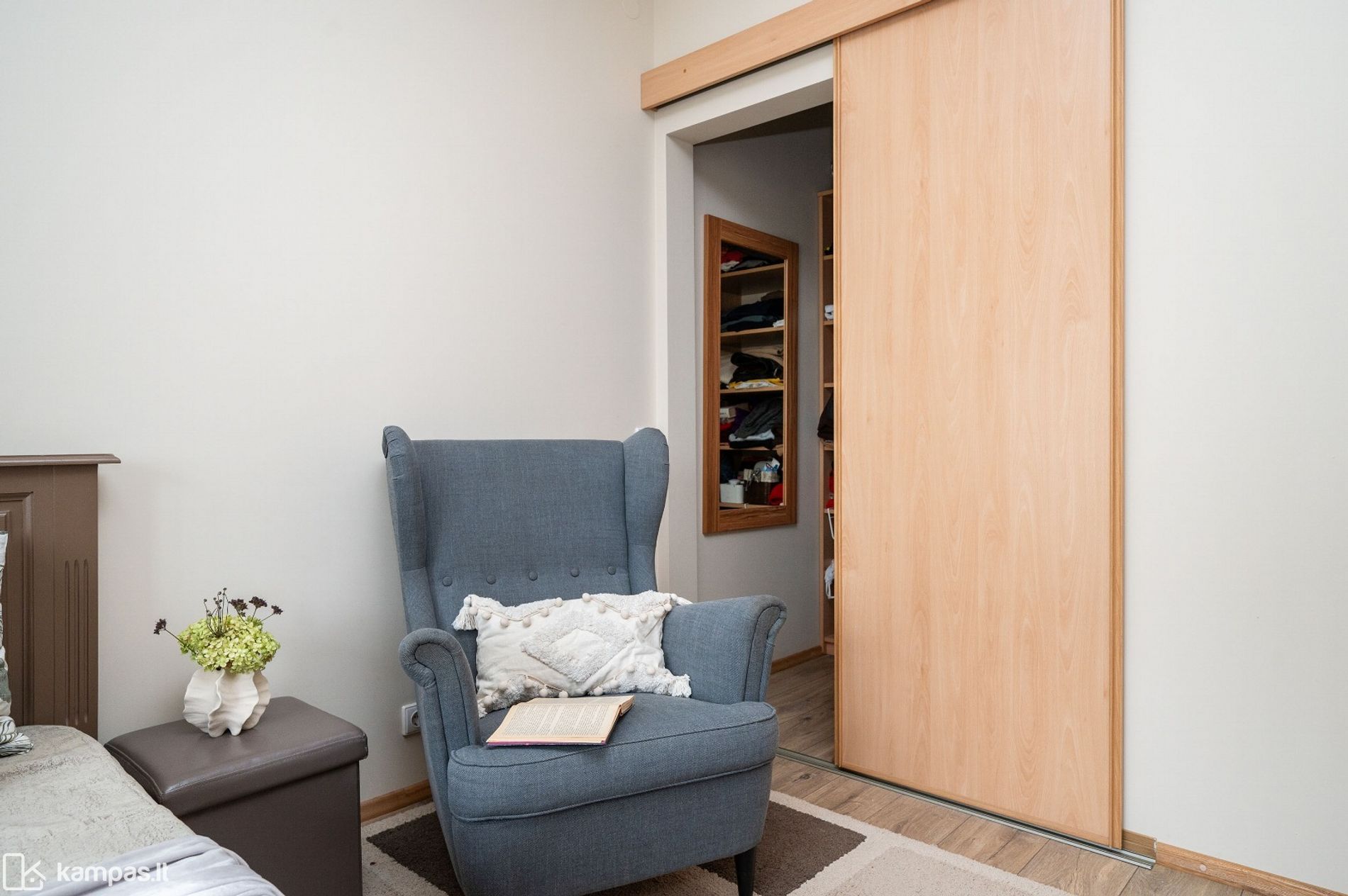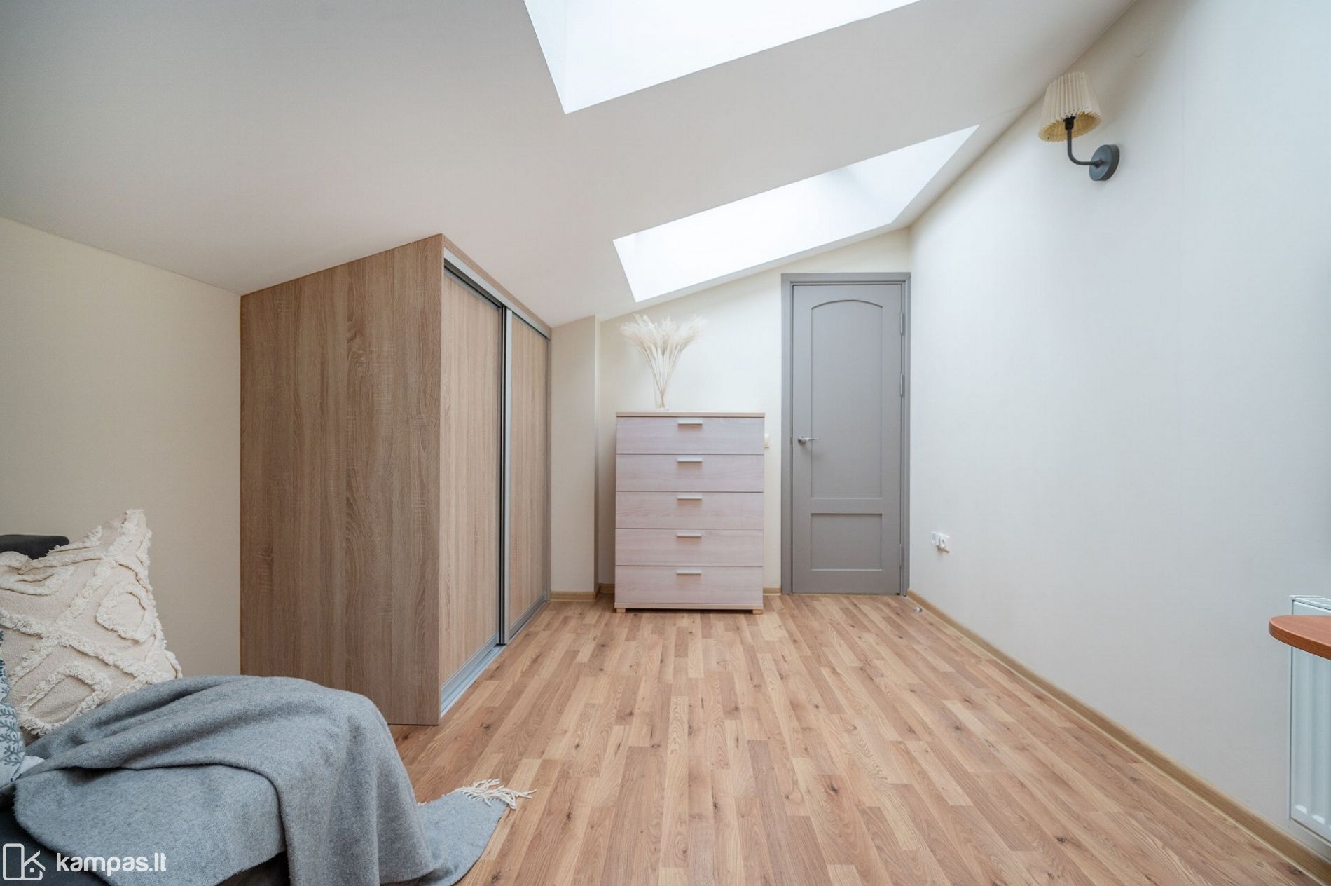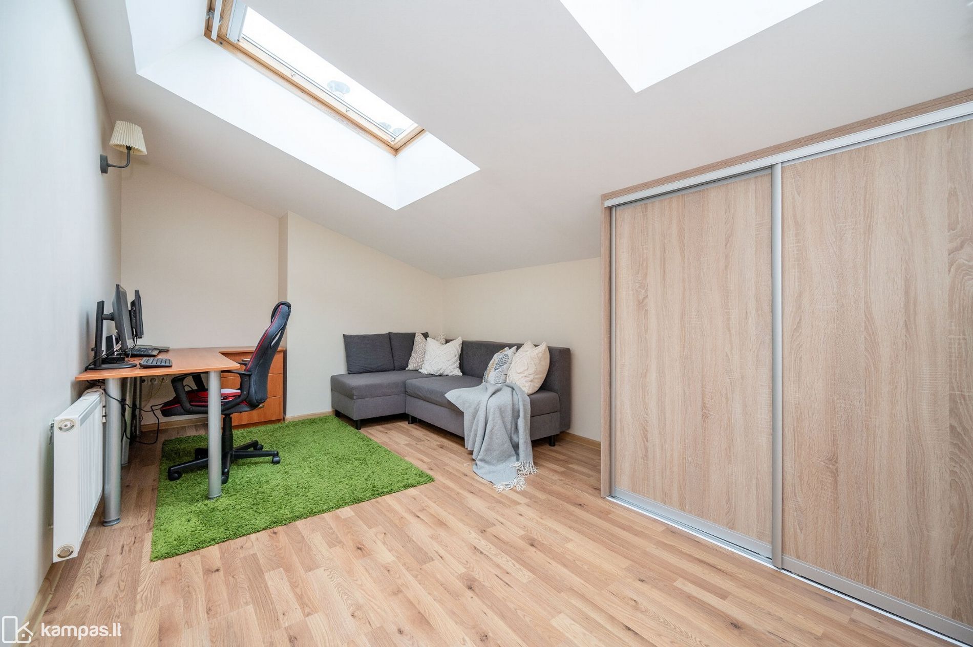 • Atskiras darbo kambarys / poilsio zona su mansardiniais langais – daug natūralios šviesos ir jaukumo;